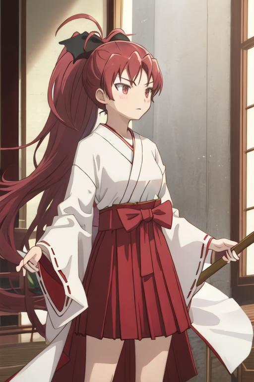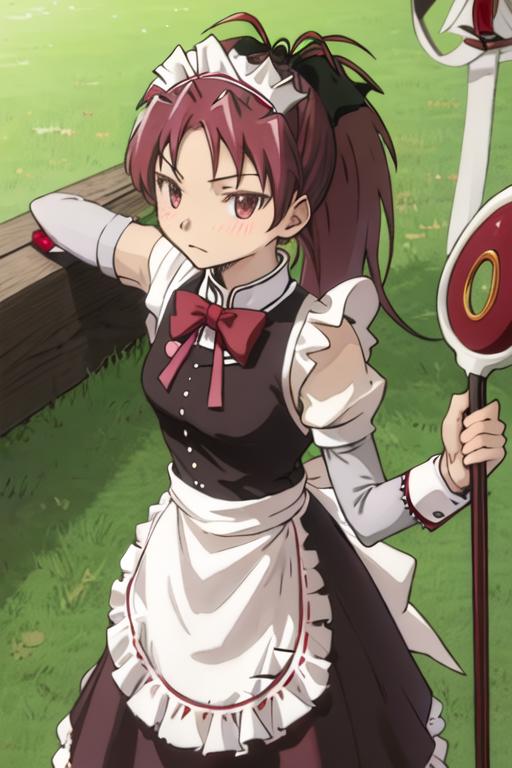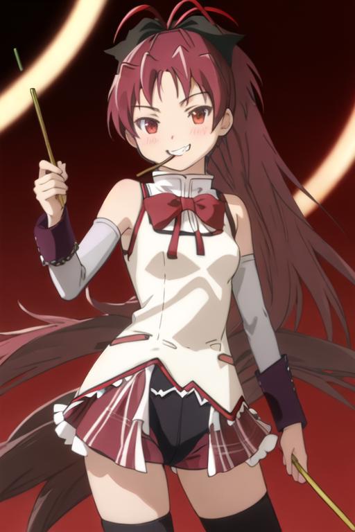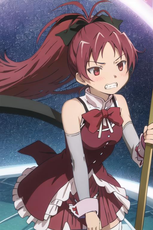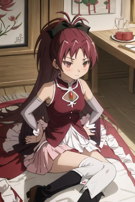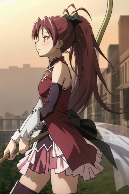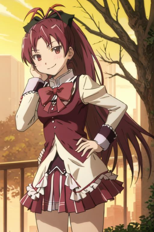 The trigger word is sakura_kyouko_puellamagimadokamagica, and the recommended tags are best quality, masterpiece, highres, solo, {sakura_kyouko_puellamagimadokamagica:1.15}, red_hair, long_hair, ponytail, red_eyes, hair_bow, bow, magical_girl.