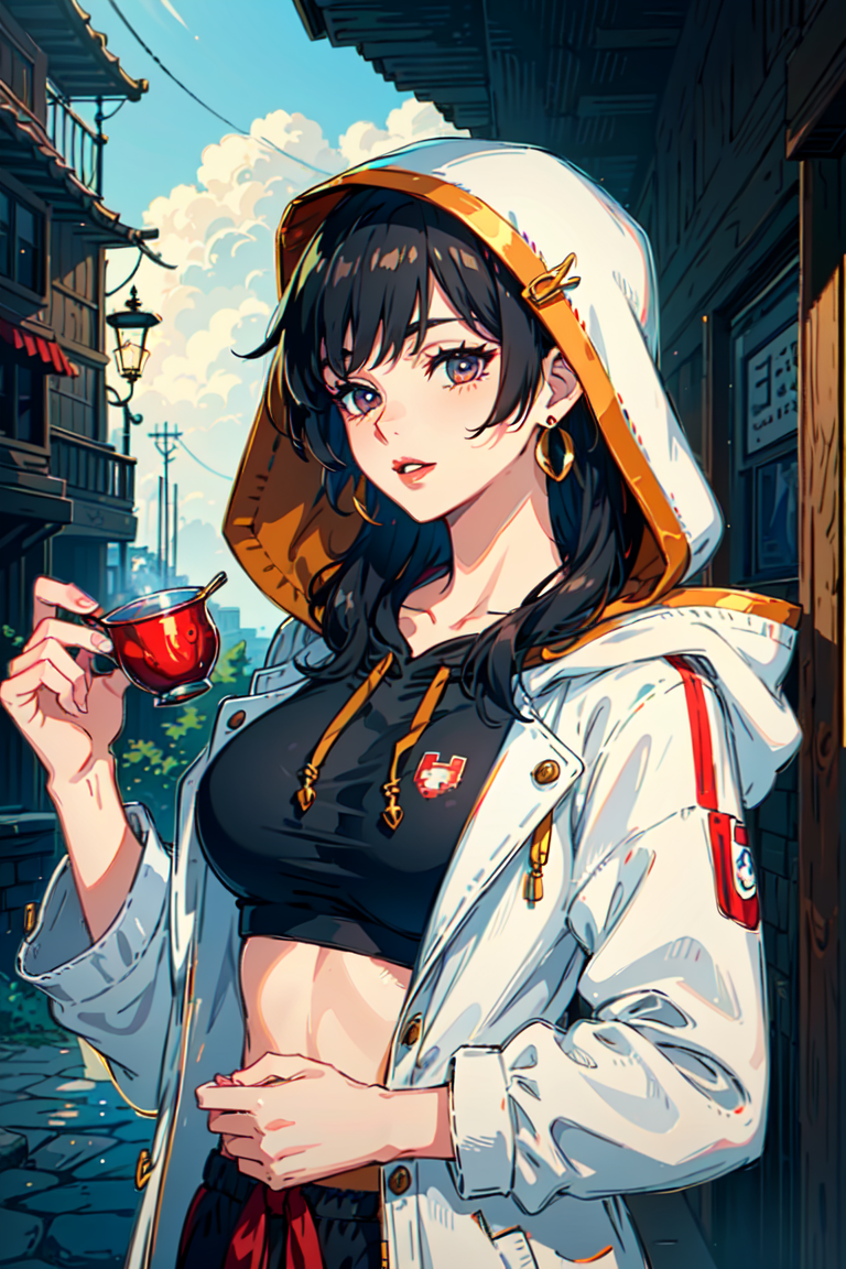 Example prompt for cozy_portrait: portrait, Soft oversized sweater, leggings, Charmer, Average Height, Narrow ????, Round Face, Dark Skin, Black Hair, aquamarine Eyes, Narrow Nose, Full Lips, Receding Chin, Long Hair, Wavy Hair, Long Curly Hair, saggy ???????, Drop earrings, violet sheer lipstick, with a geyser in the background