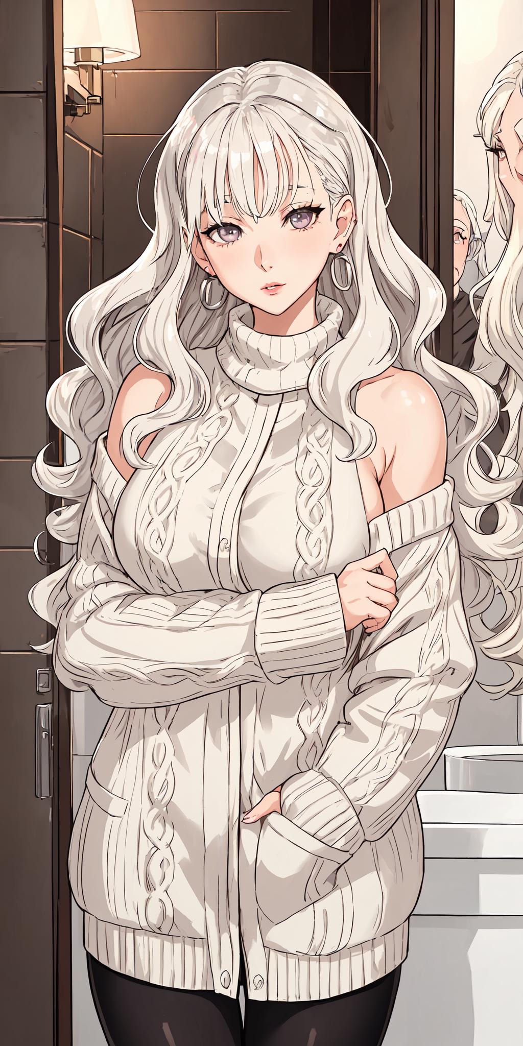 Example prompt for cozy_private_area: Soft oversized sweater, leggings, Charmer, Average Height, Narrow ????, Round Face, Dark Skin, Black Hair, aquamarine Eyes, Narrow Nose, Full Lips, Receding Chin, Long Hair, Wavy Hair, Long Curly Hair, saggy ???????, Drop earrings, violet sheer lipstick, home theater, separation light