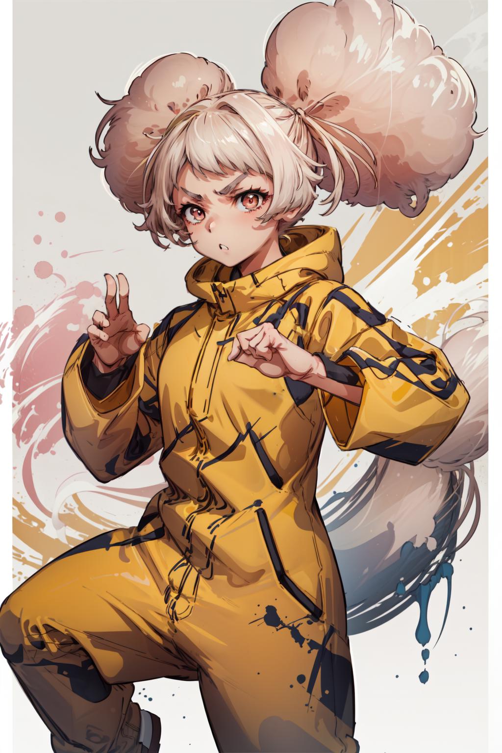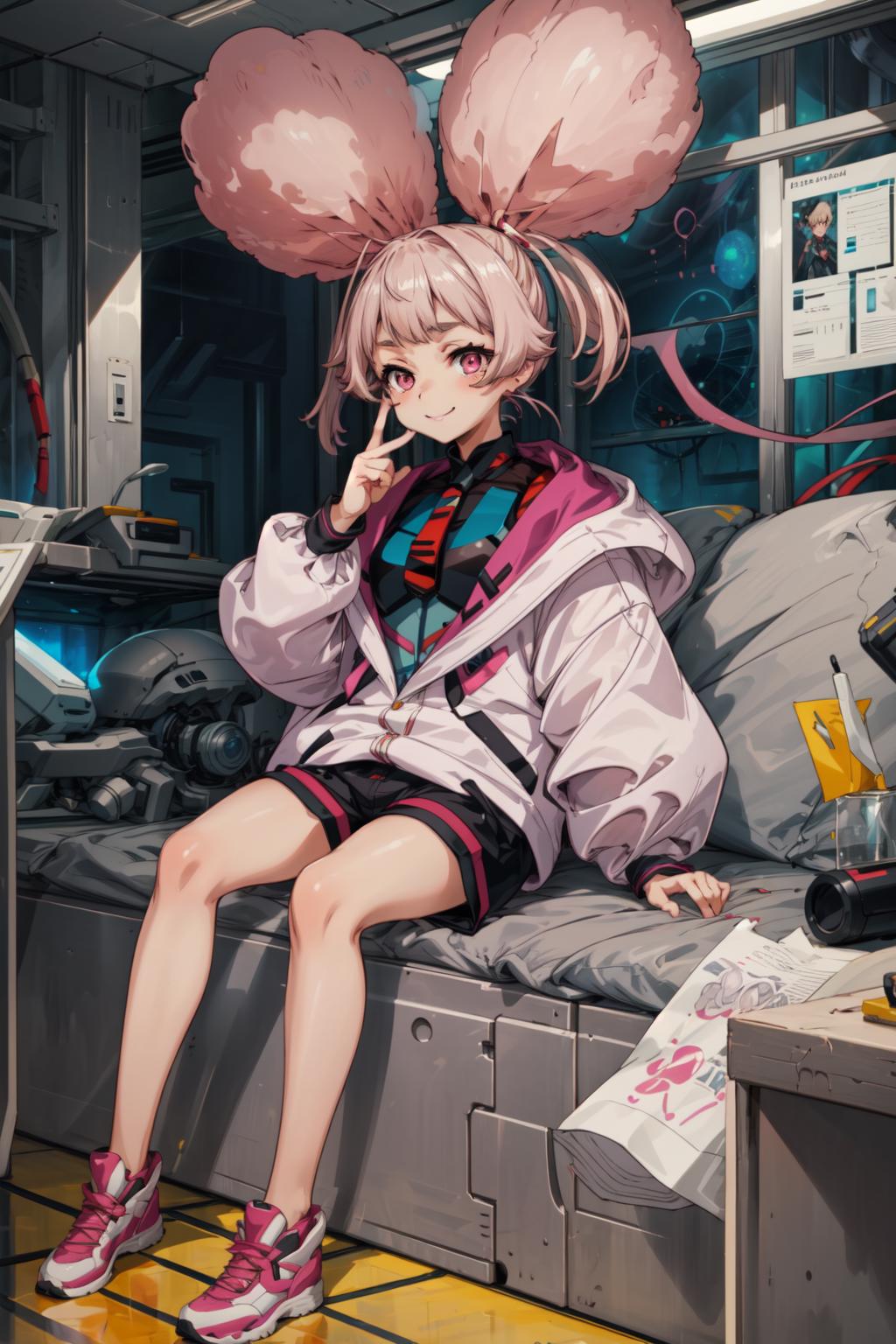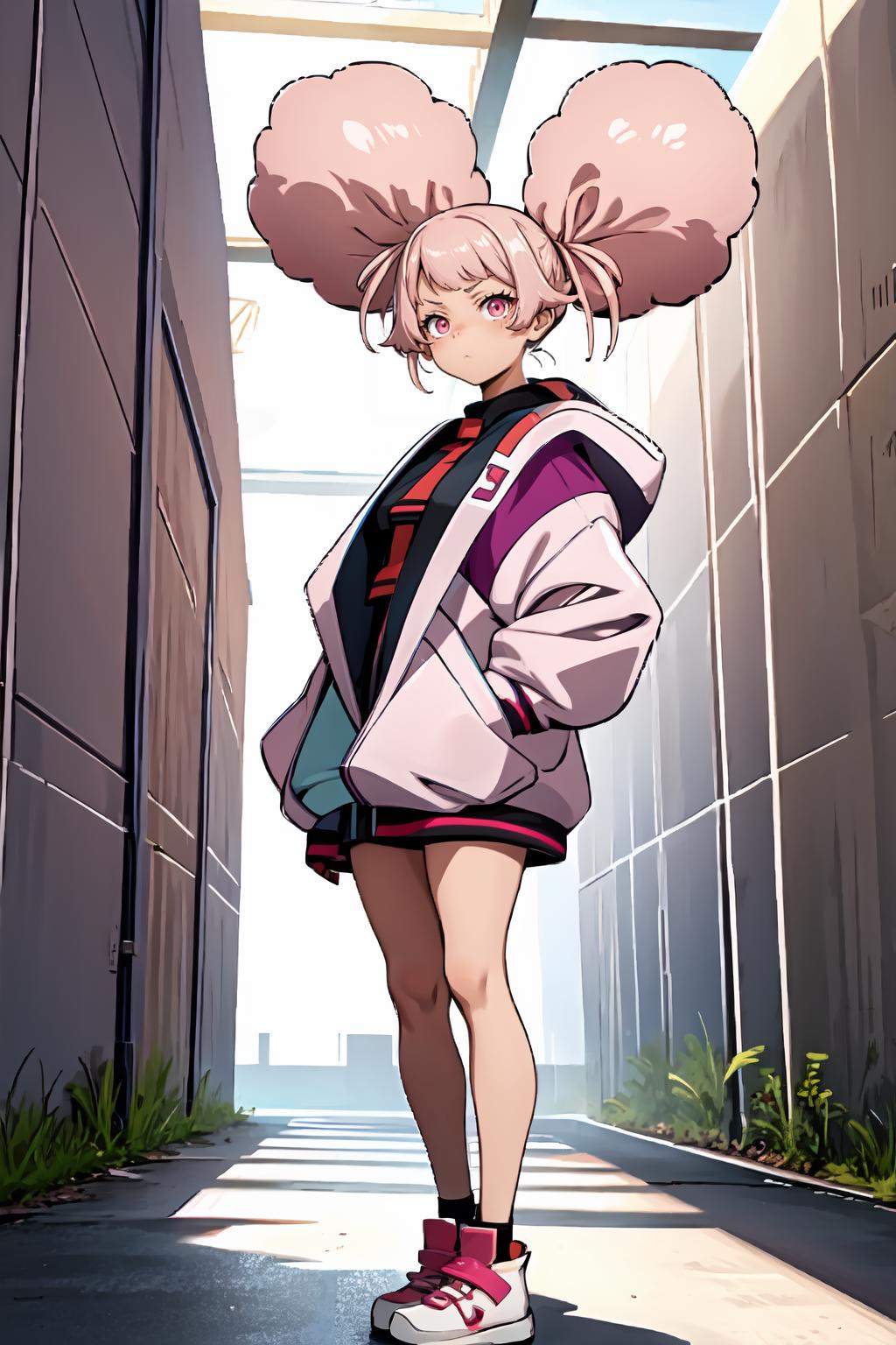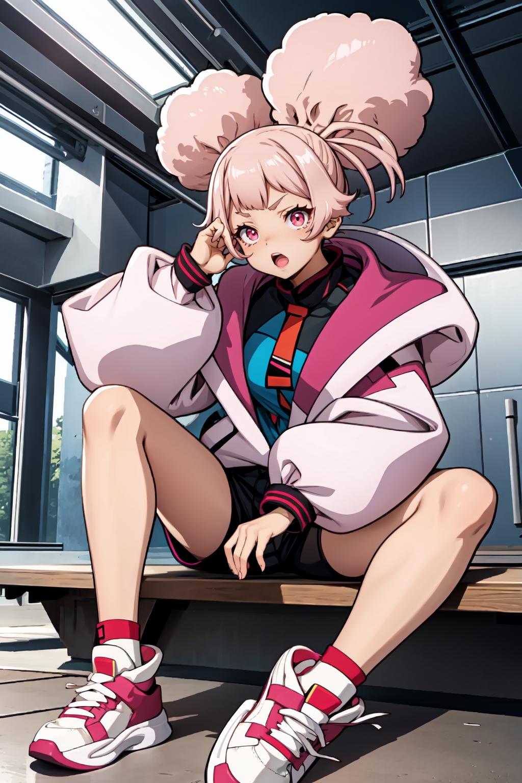 chuchu jacket, puffy long sleeves, shorts, white footwear