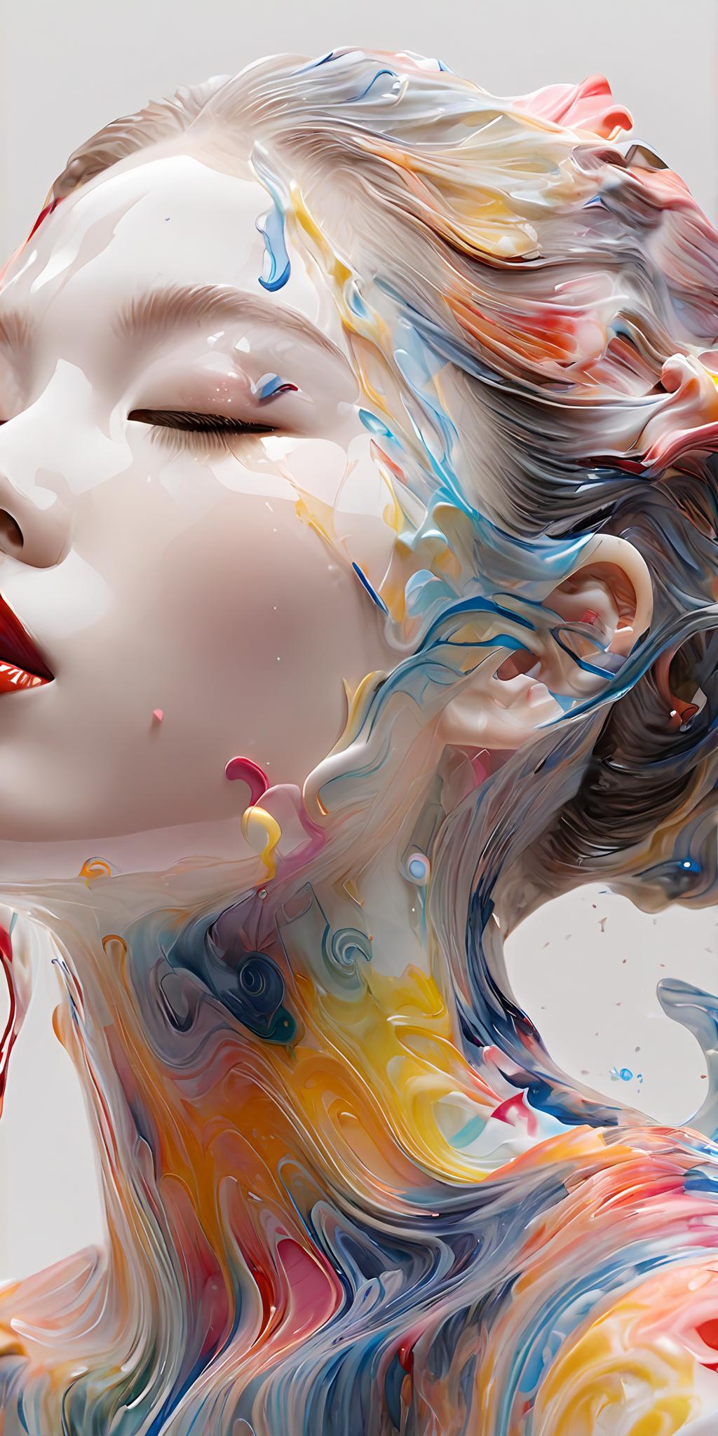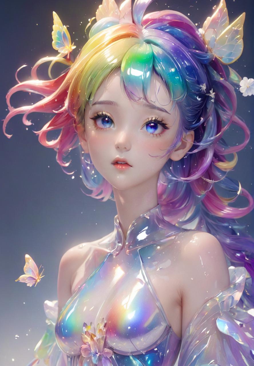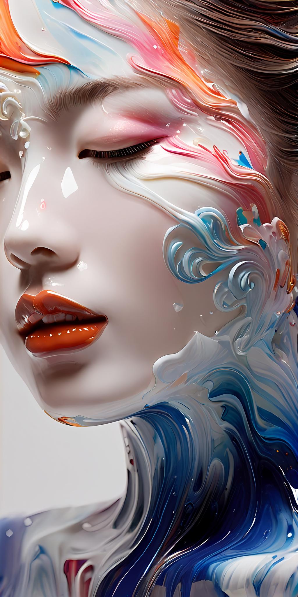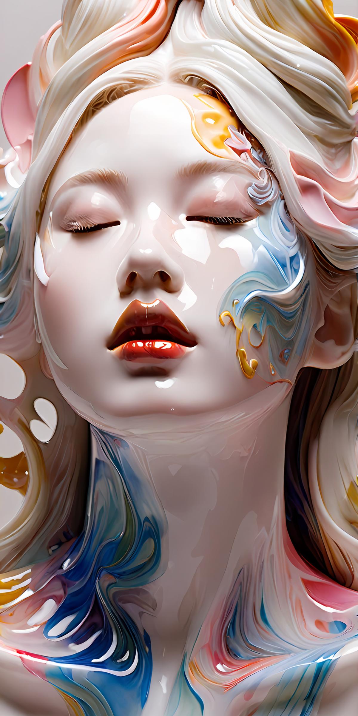 Recommended prompts: "a girl formed of colored glaze", "a close up of a doll with"