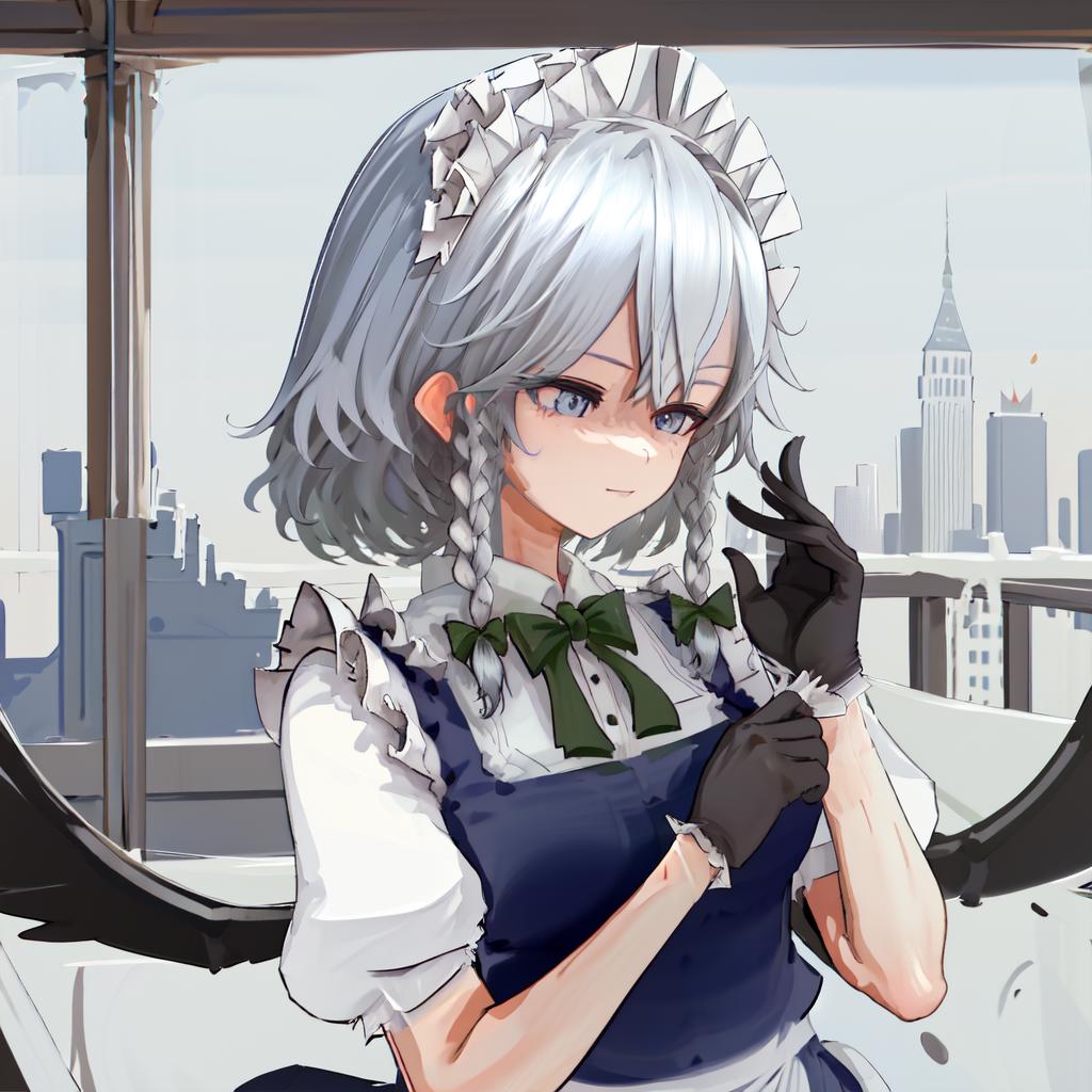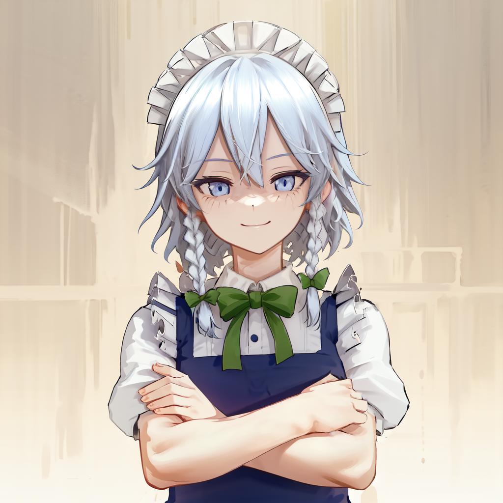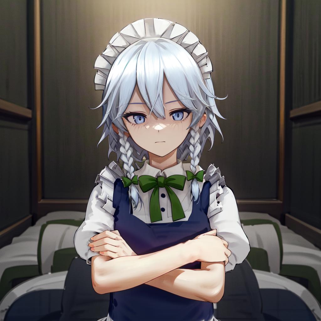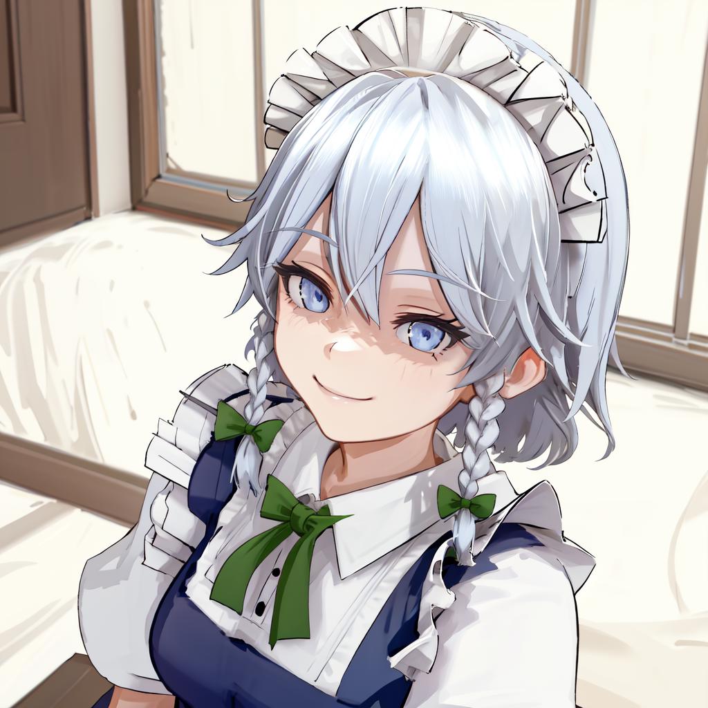 Izayoi Sakuya detail tags: touhou, izayoi sakuya, bangs, hair between eyes, twin braids