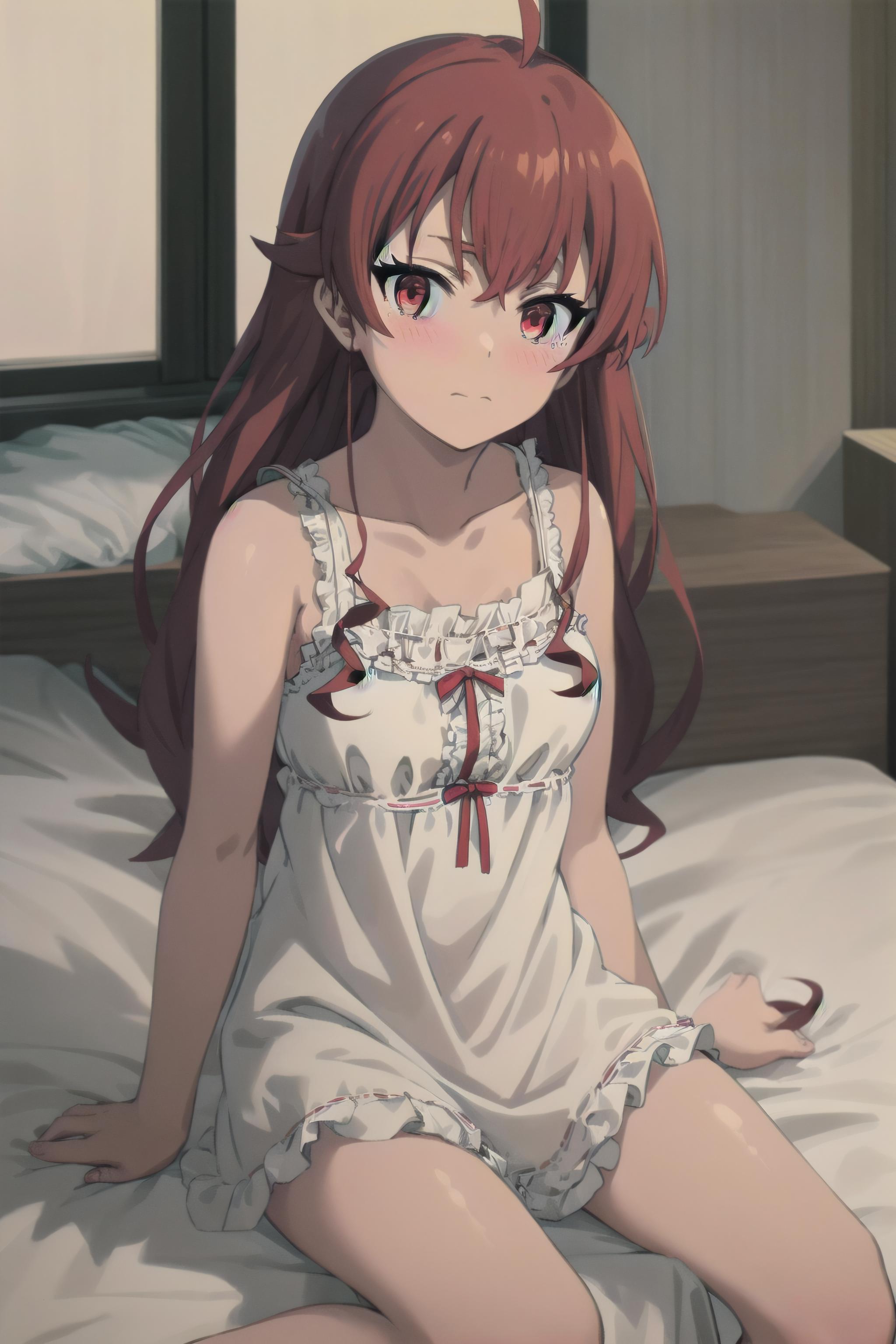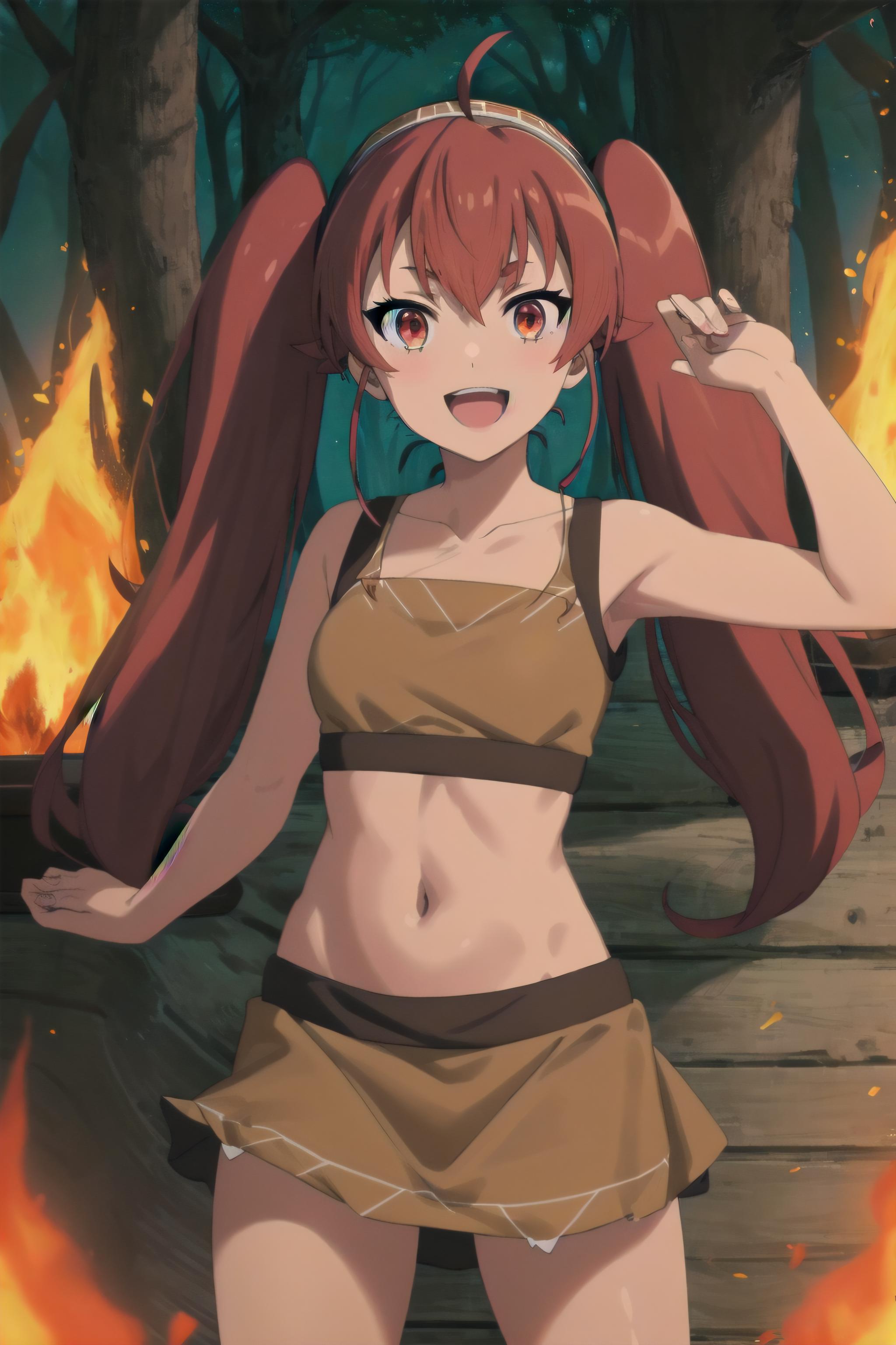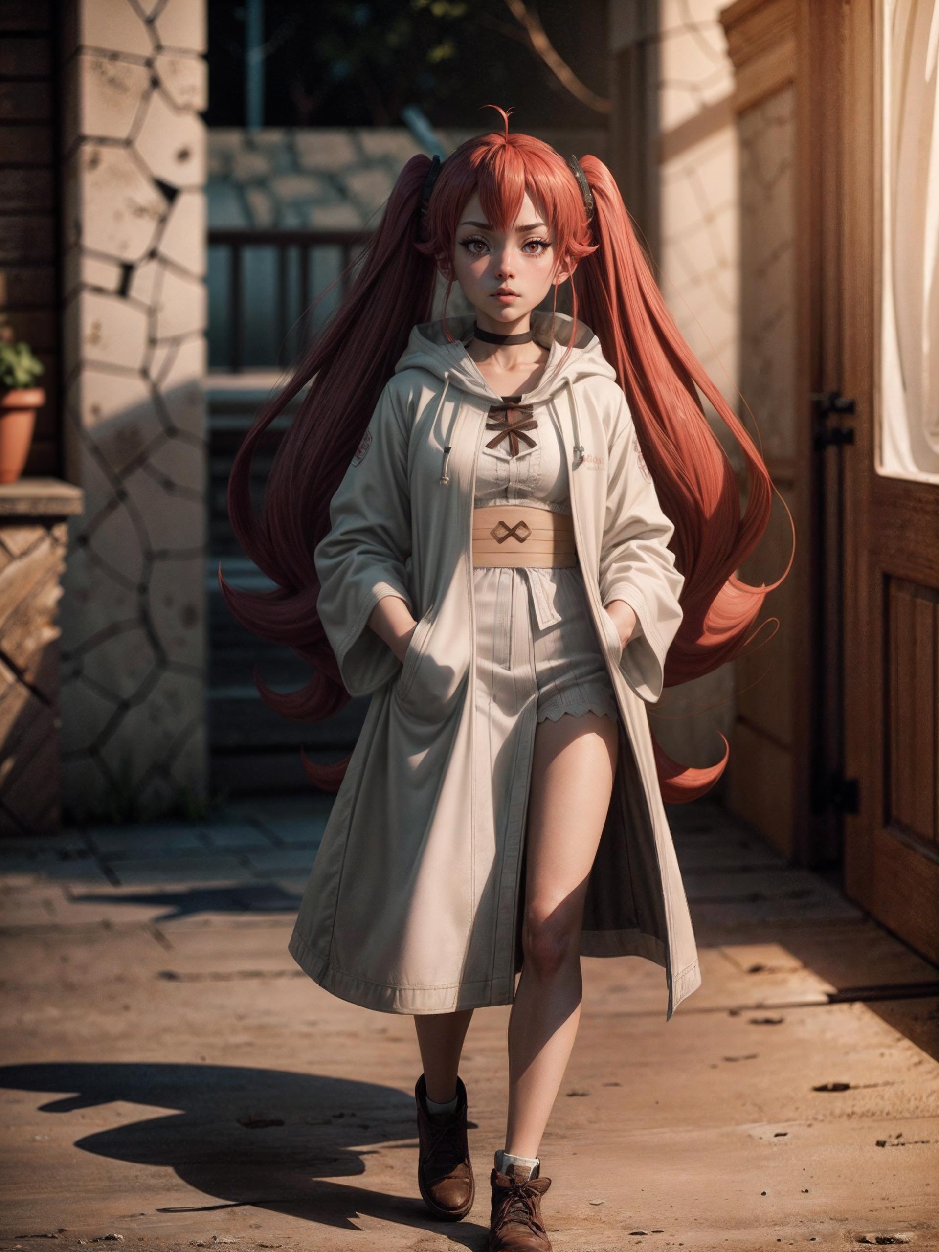twintails, red hair, ahoge, red eyes