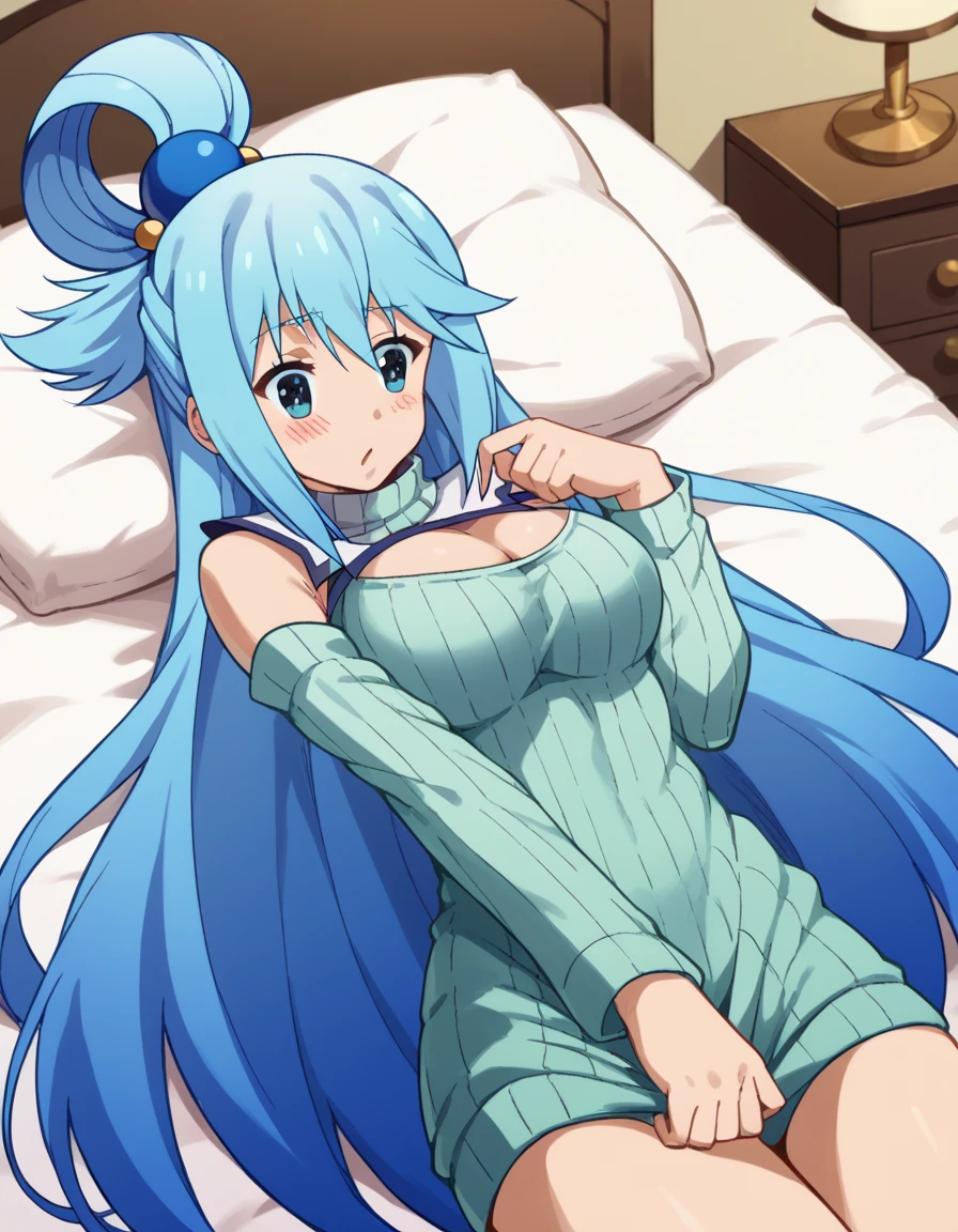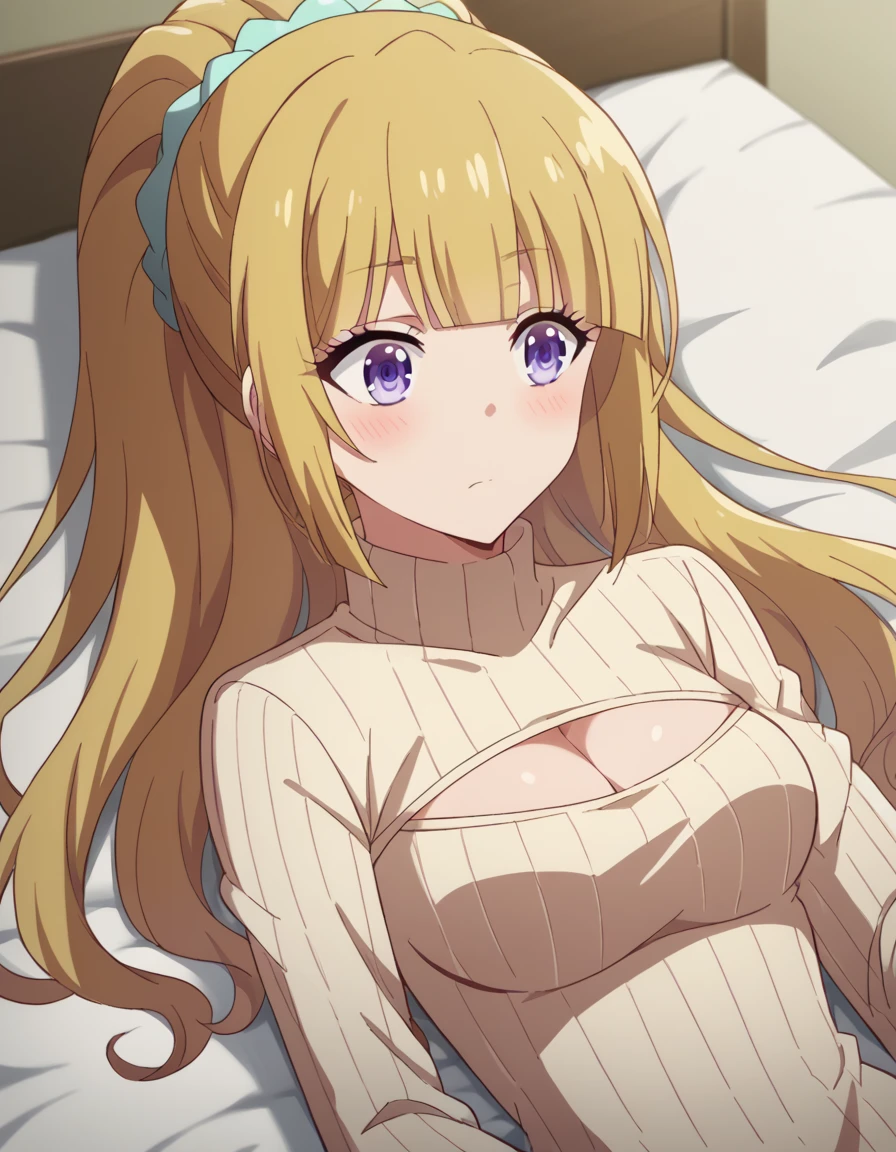<lora:open-chest-sweater-ponyxl-lora-nochekaiser:1>, open-chest sweater, ribbed sweater, cleavage cutout, meme attire, clothing cutout, turtleneck, sweater dress, cleavage, clothes tug, sweater pull, cleavage reach,