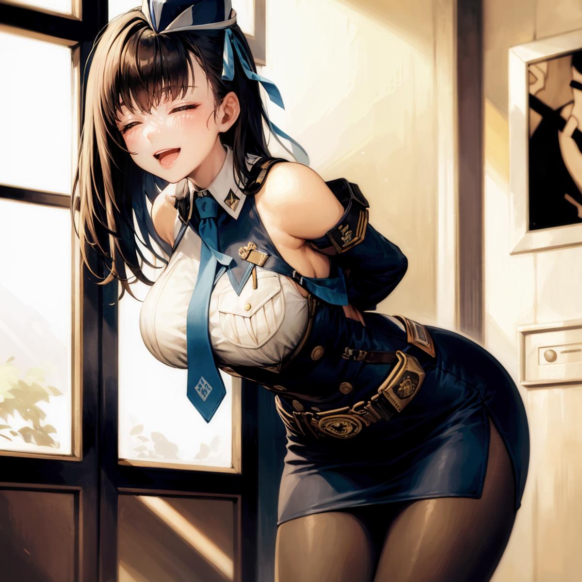 marian, shirt, necktie, hat, hair ribbon, gloves, belt, skirt, detached sleeves, pantyhose