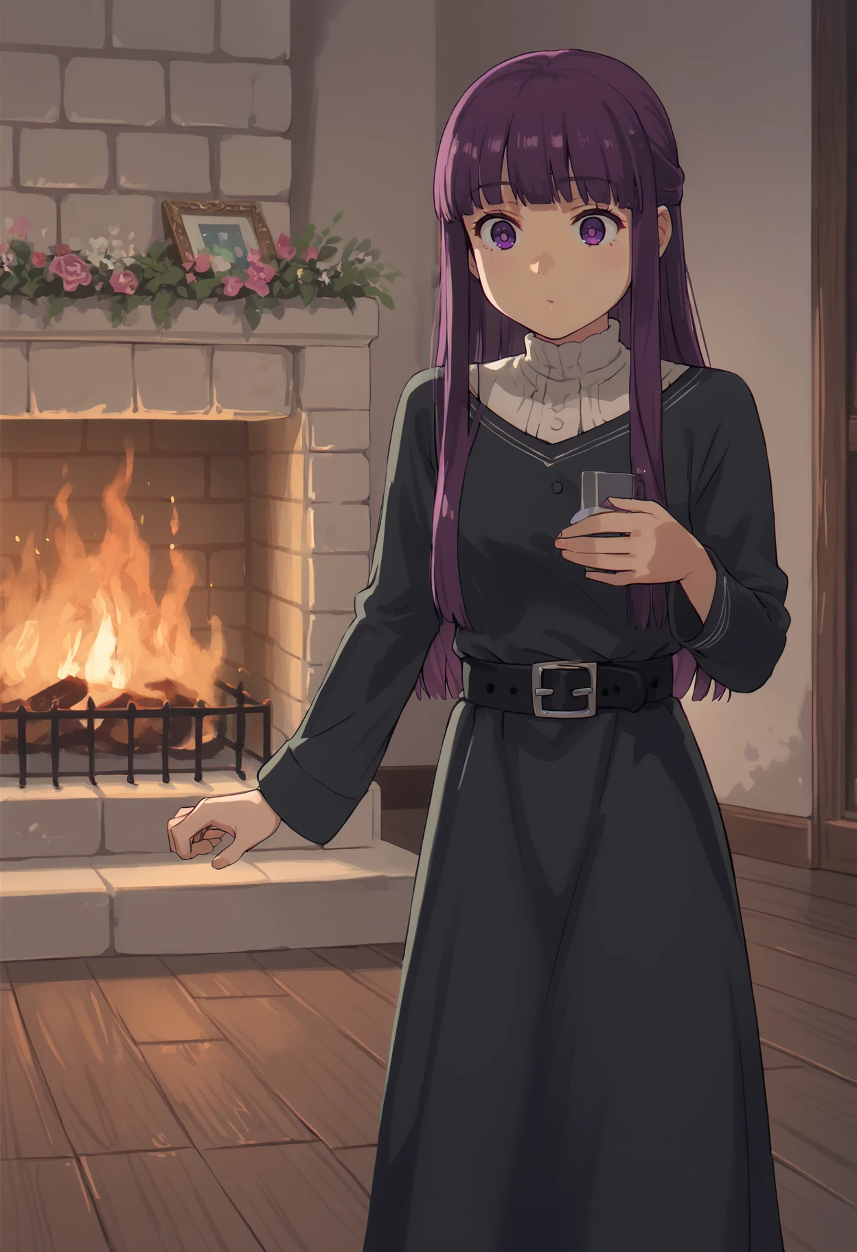 fernwinter, black dress, white jacket, scarf, winter clothes
