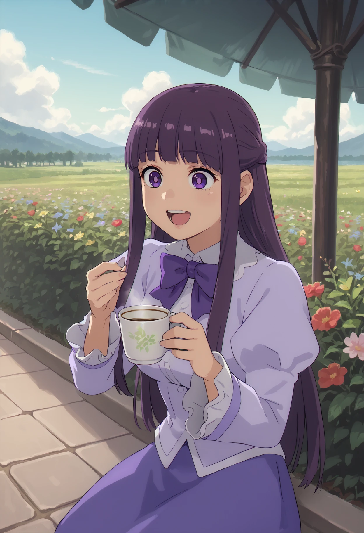fernfancy, purple skirt, juliet sleeves, white shirt, puffy sleeves, purple bow