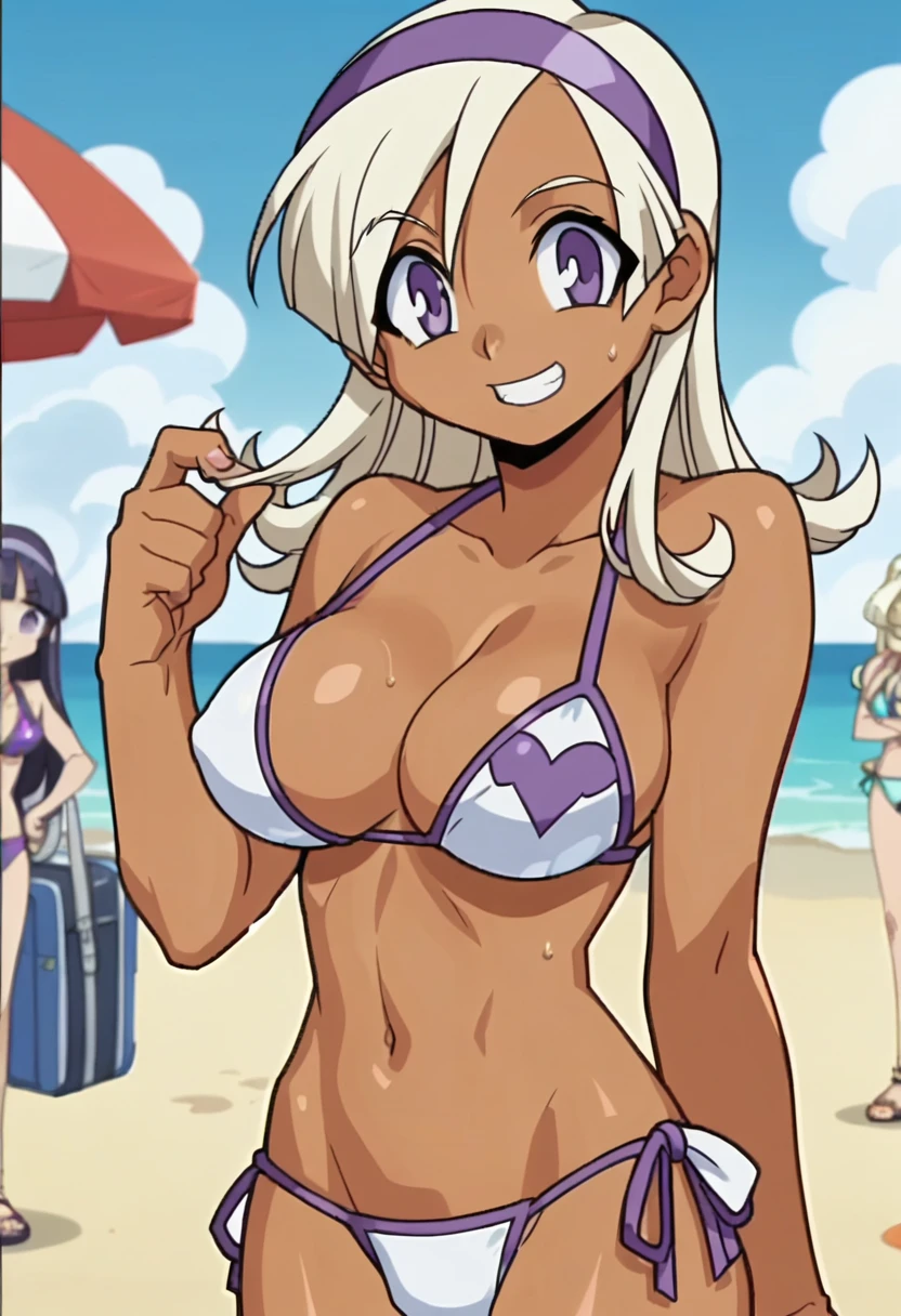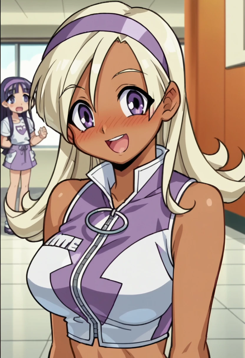 Hyuuga miki,Final Romance, Long hair, Blonde hair,((Brown skin)),purple hair band,purple eyes,large breasts