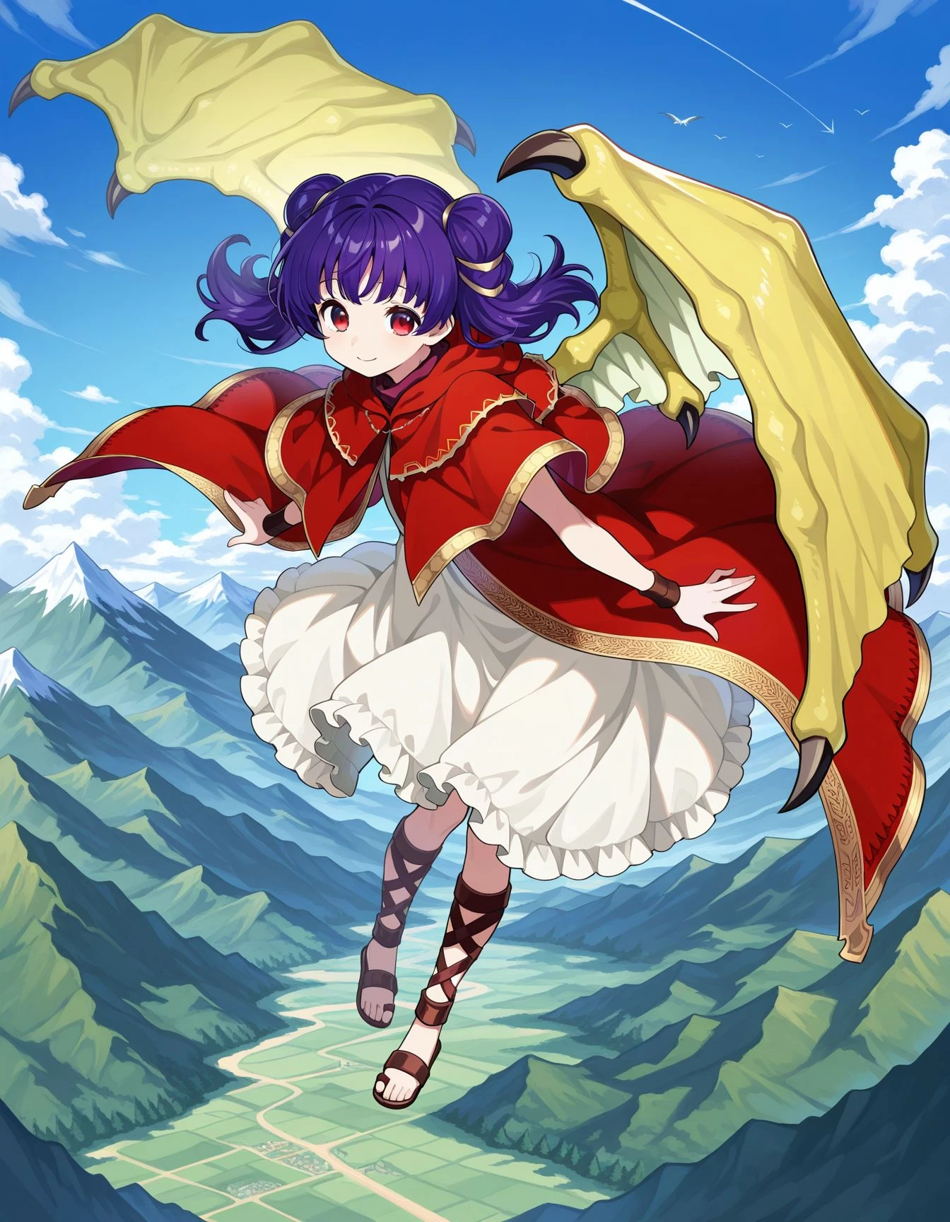 myrrh feh,dragon wing,wristband,red capelet,red coat,white dress,sandals