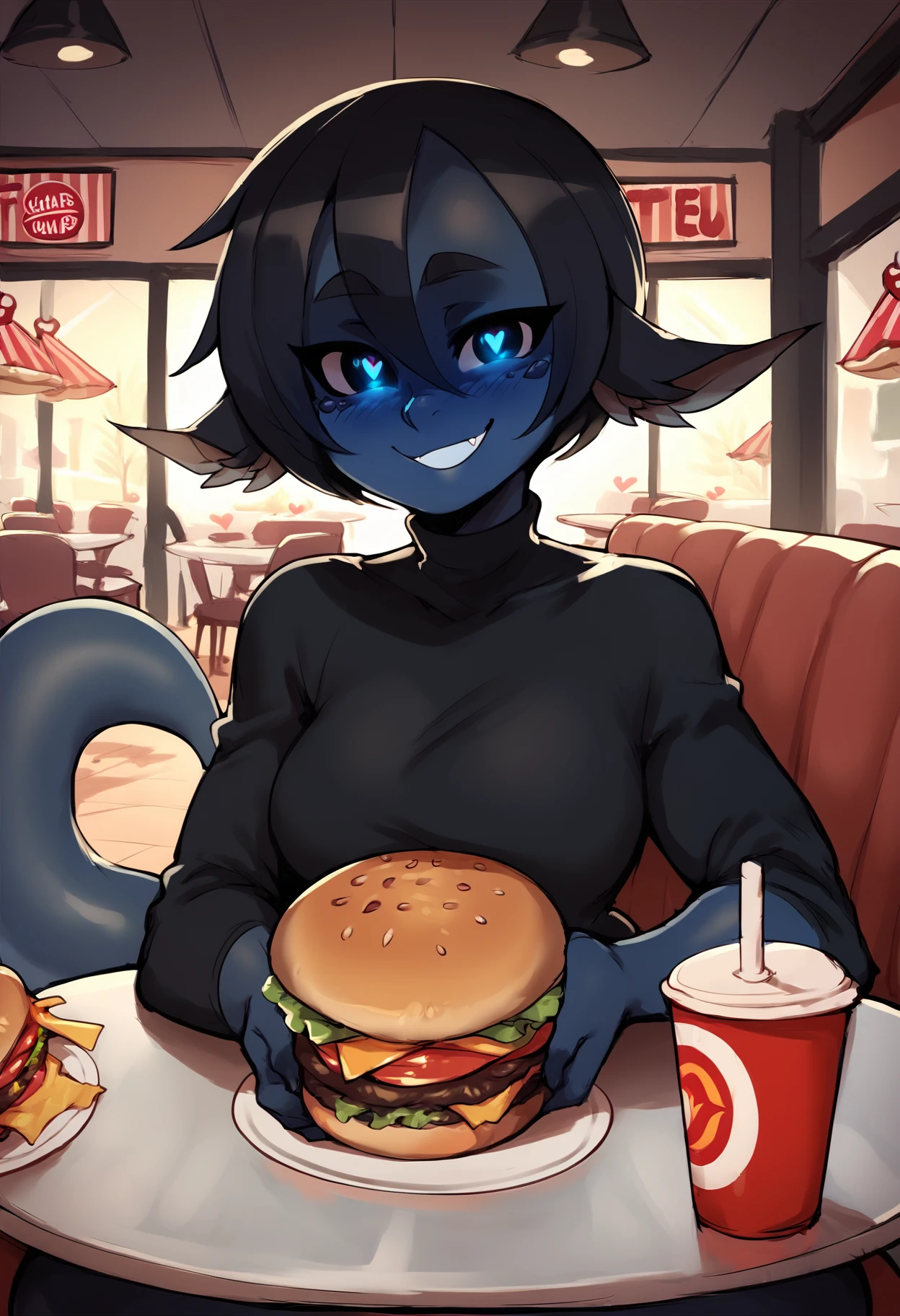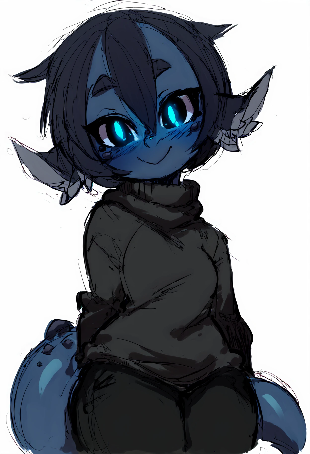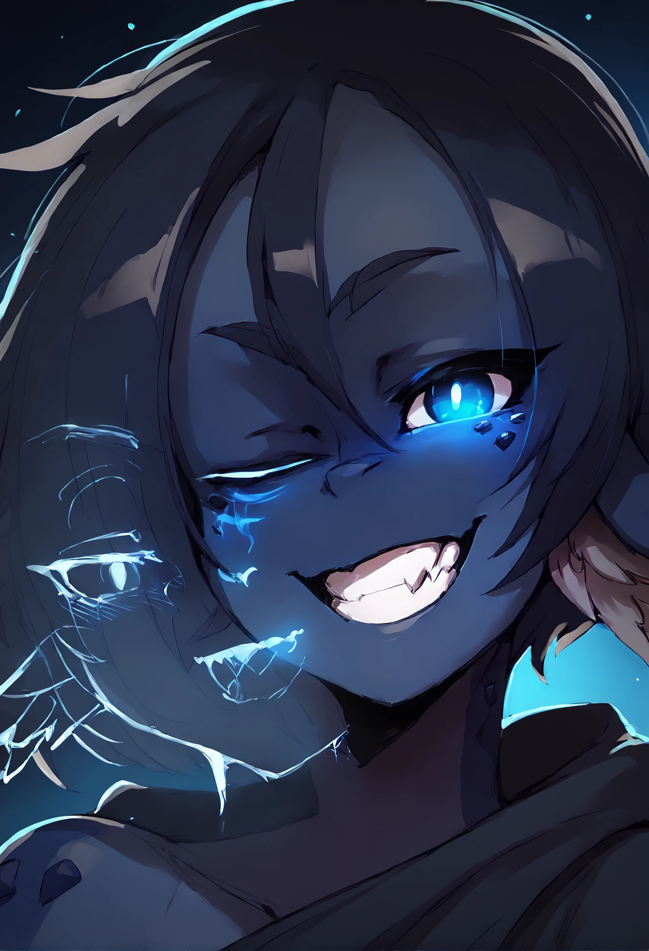 Triggers are Smouldie mainly, then the rest ; 1girl, blue skin, masterpiece, best quality, short hair, (tail)