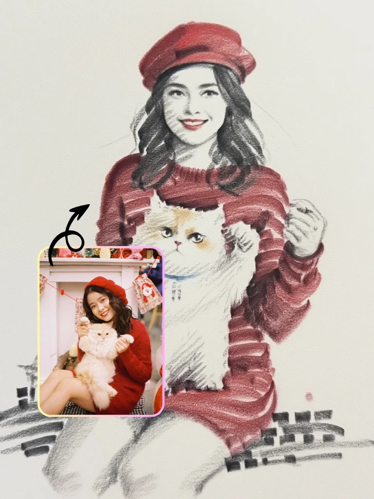 入力: 画像出力: リトルスケッチスタイルの画像"たった1枚の入力画像と30秒のコーヒータイムで完了します, 画像をリトルスケッチスタイルに簡単に変換できます."