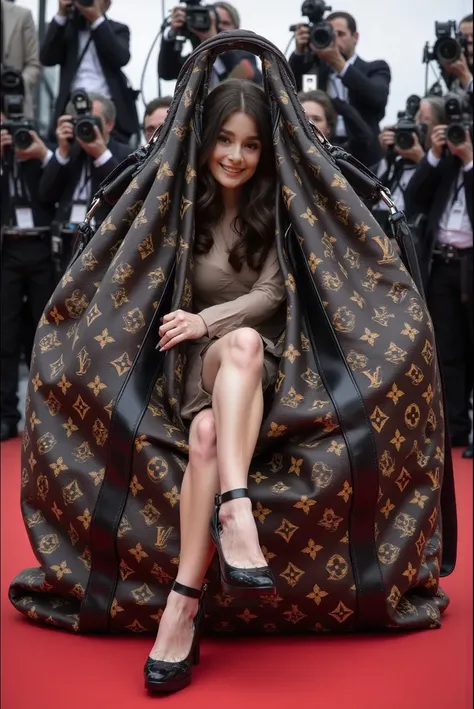 自分のラグジュアリーブランドの広告写真と一緒に撮影する