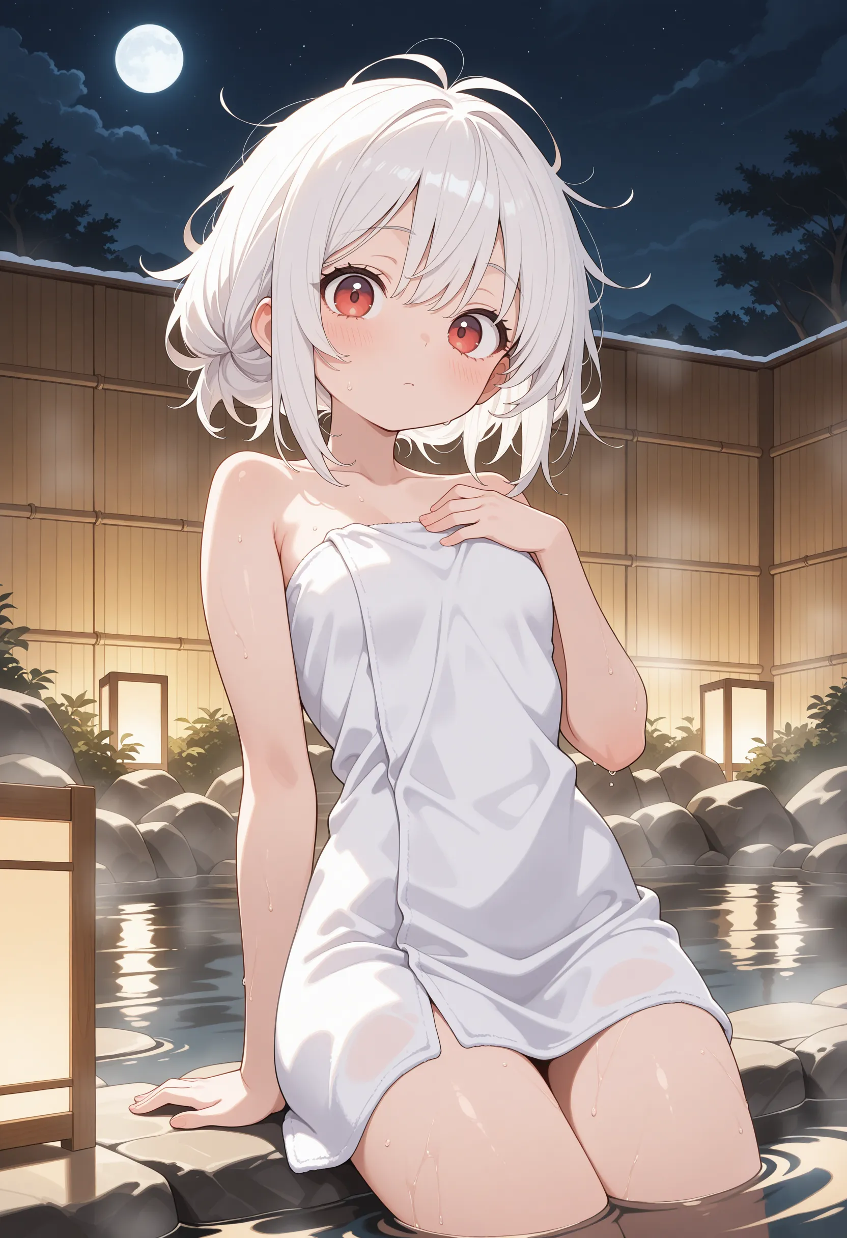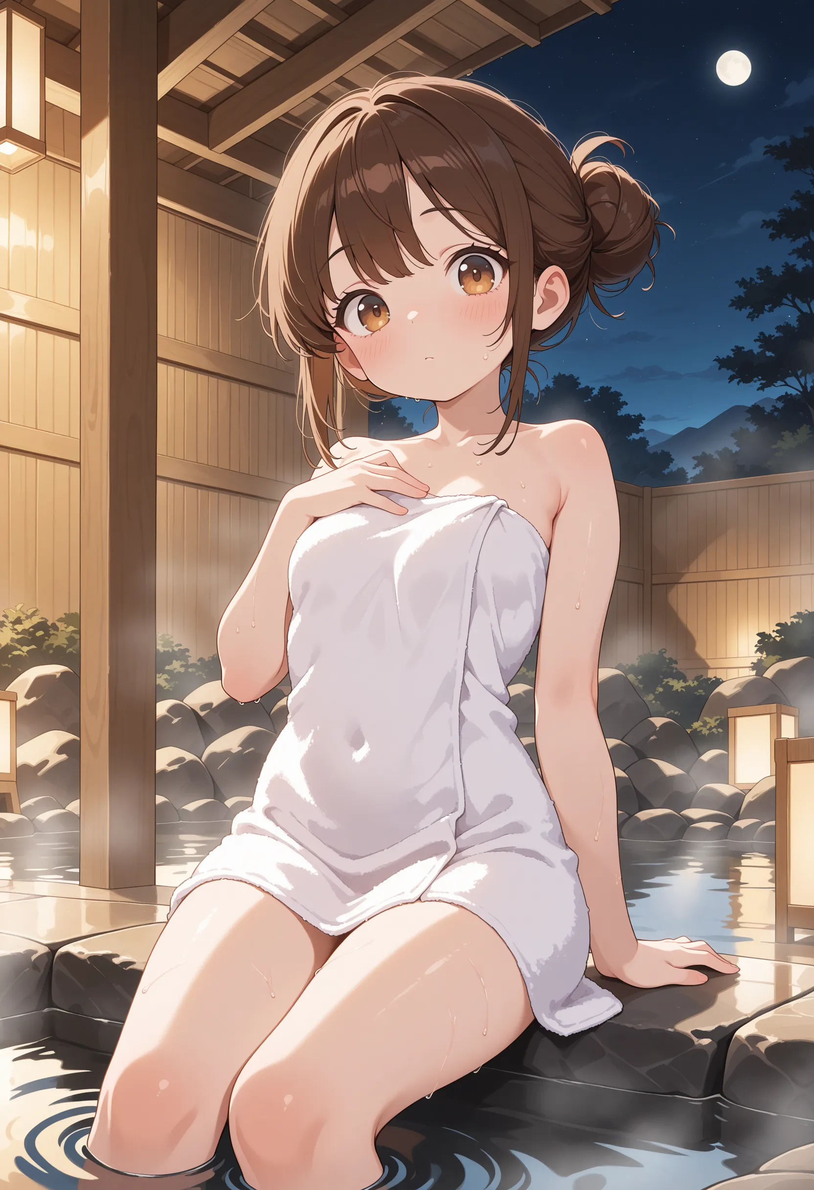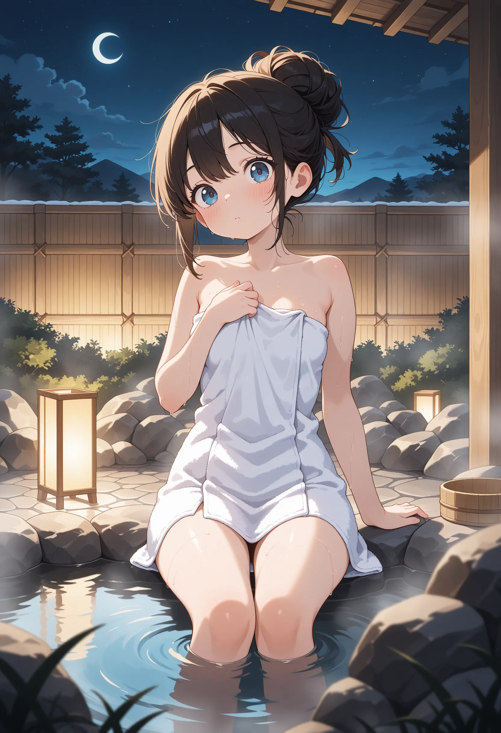 温泉でアニメの女の子を生成するプロンプト.
