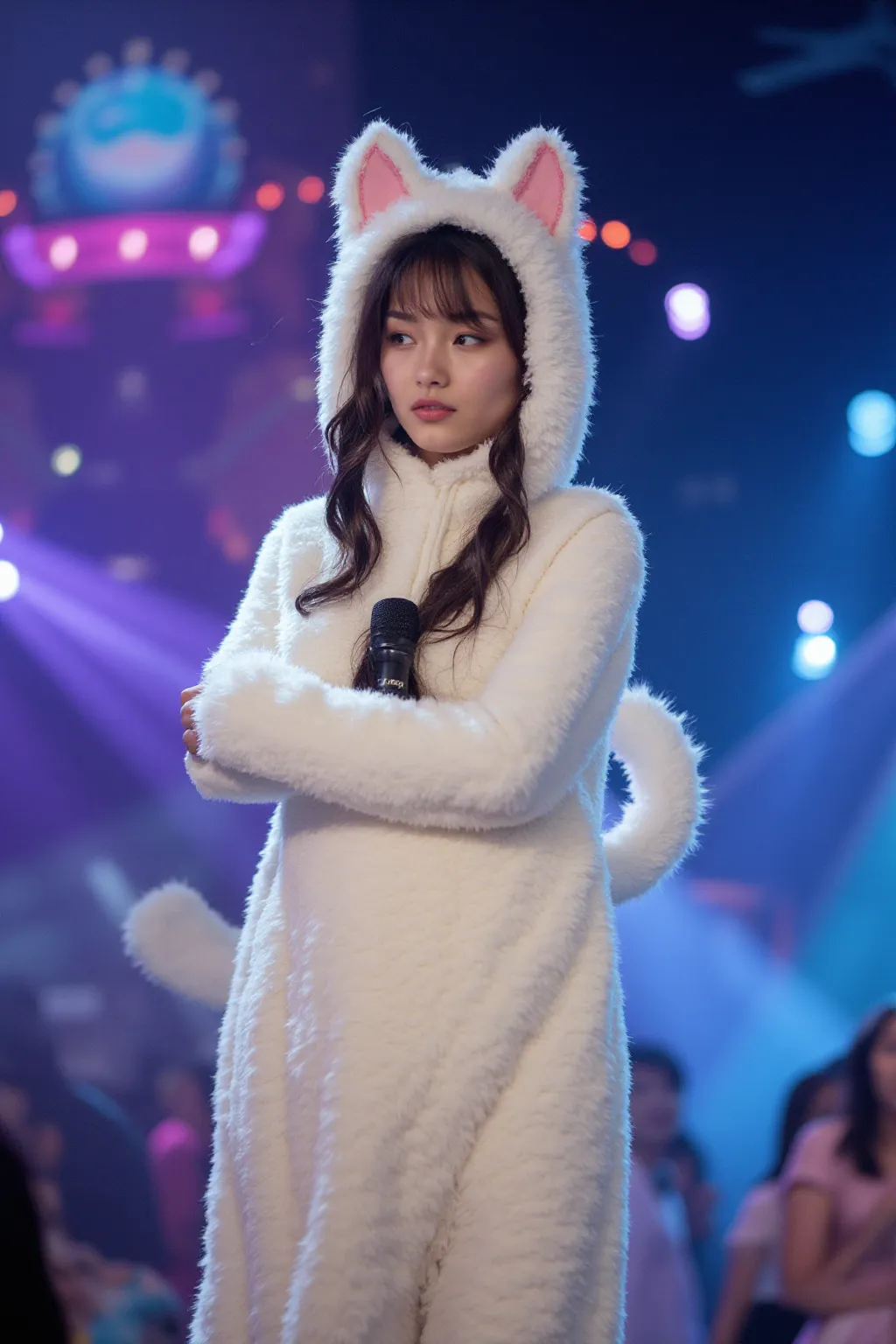写真を提供してください,毛绒装舞台上同款风格AI主题を即座に生成できます