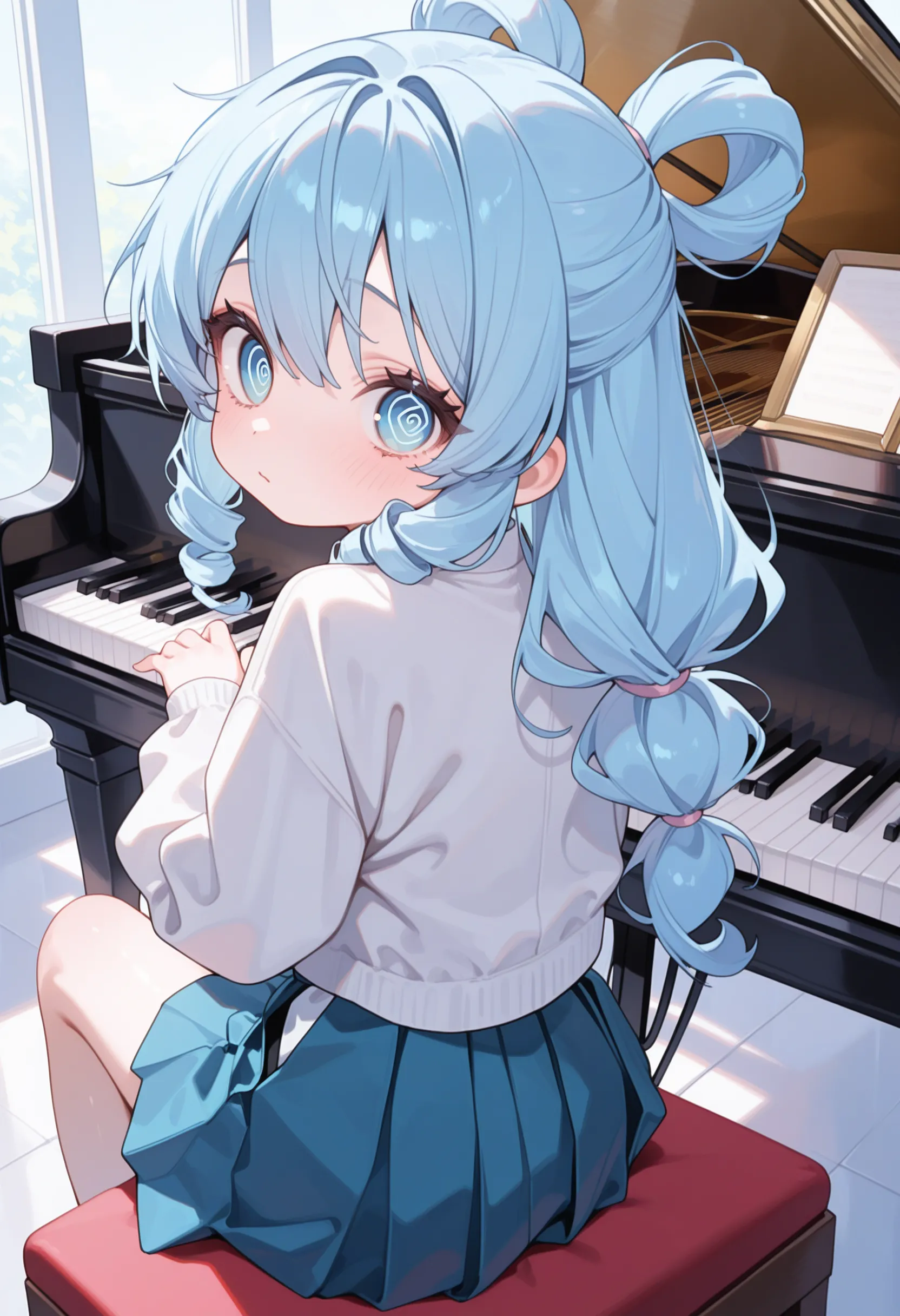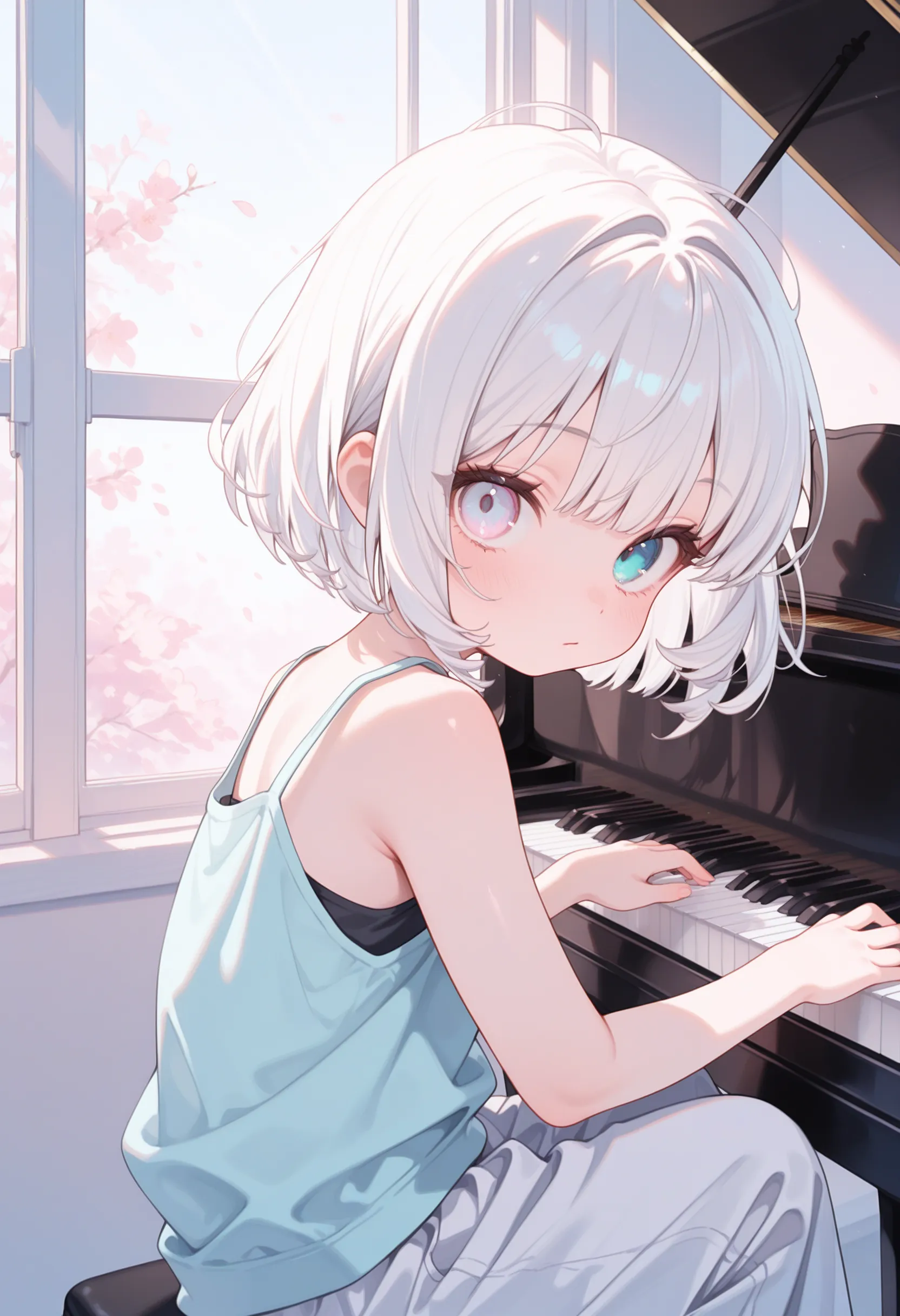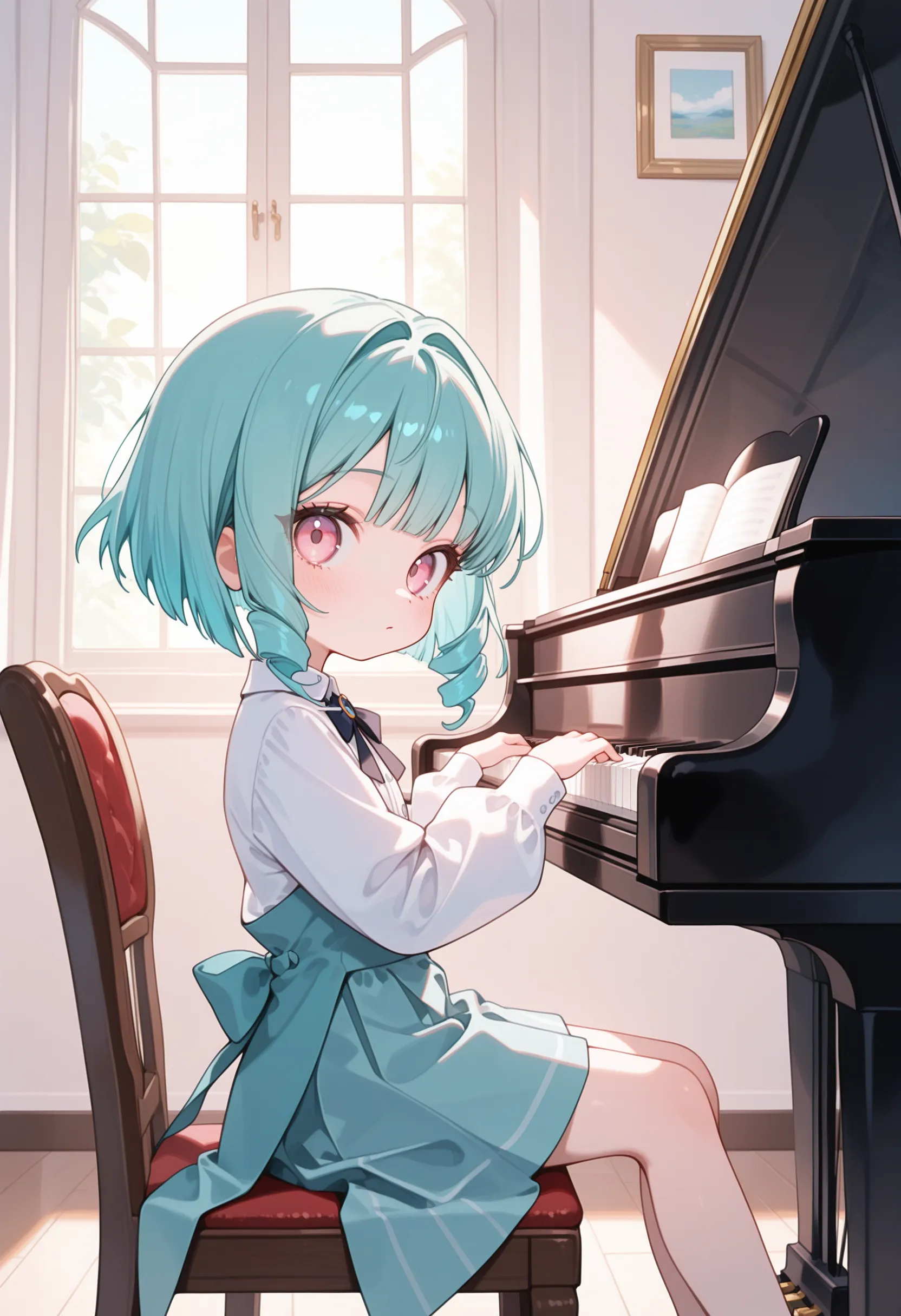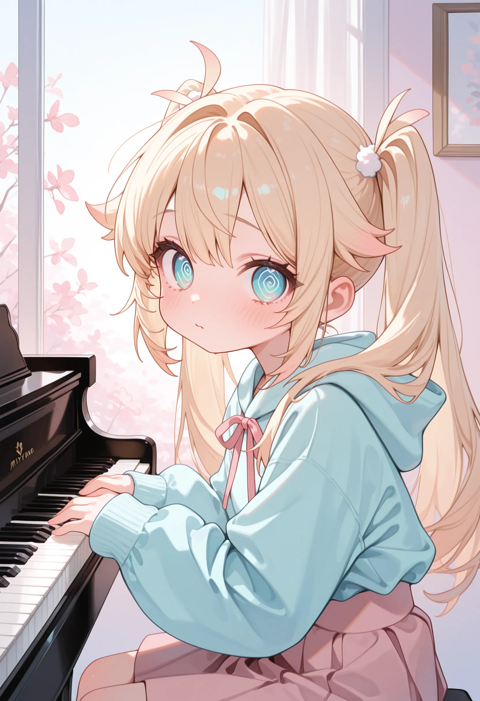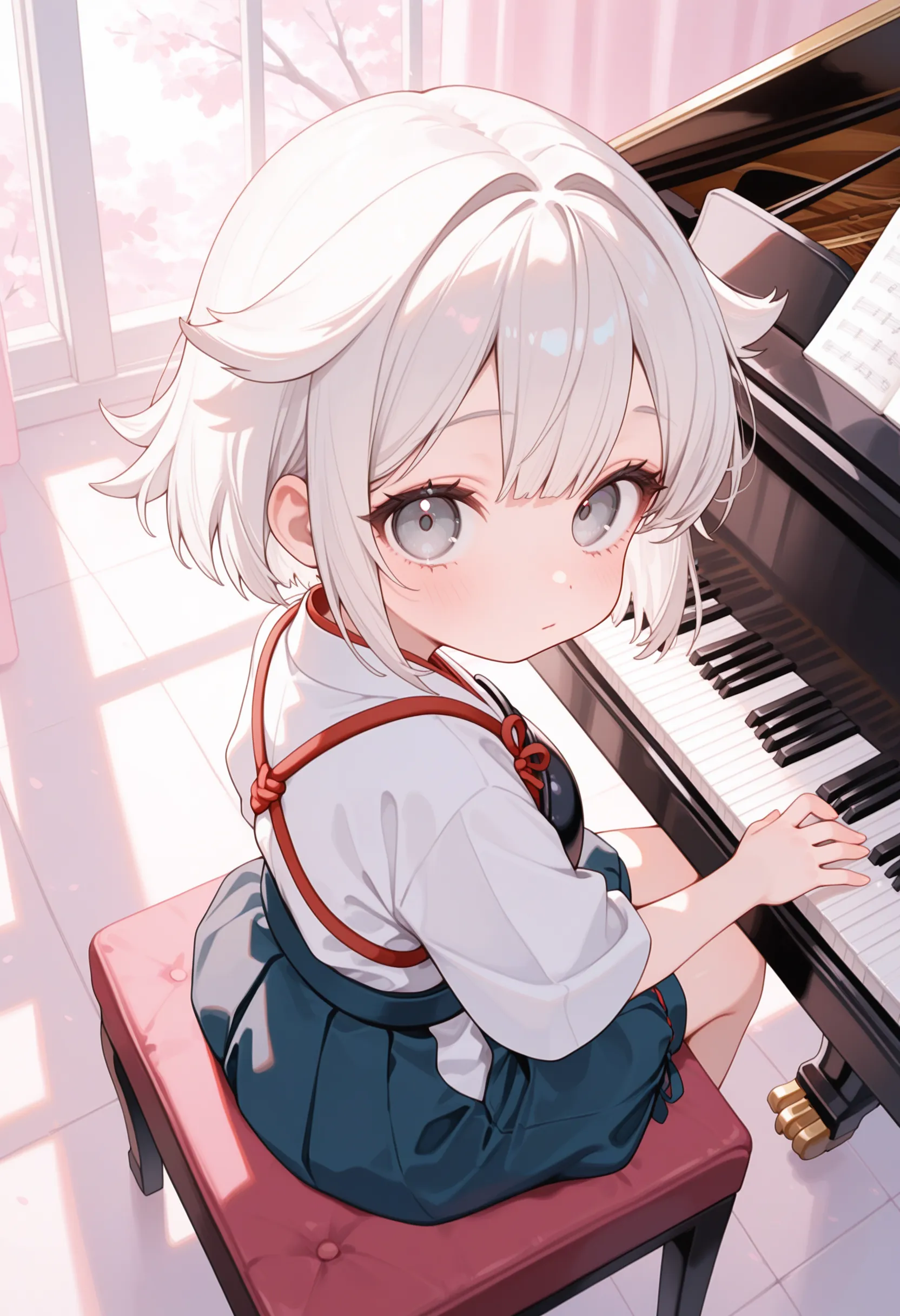 アニメの女の子がピアノを弾いているプロンプトを生成する.