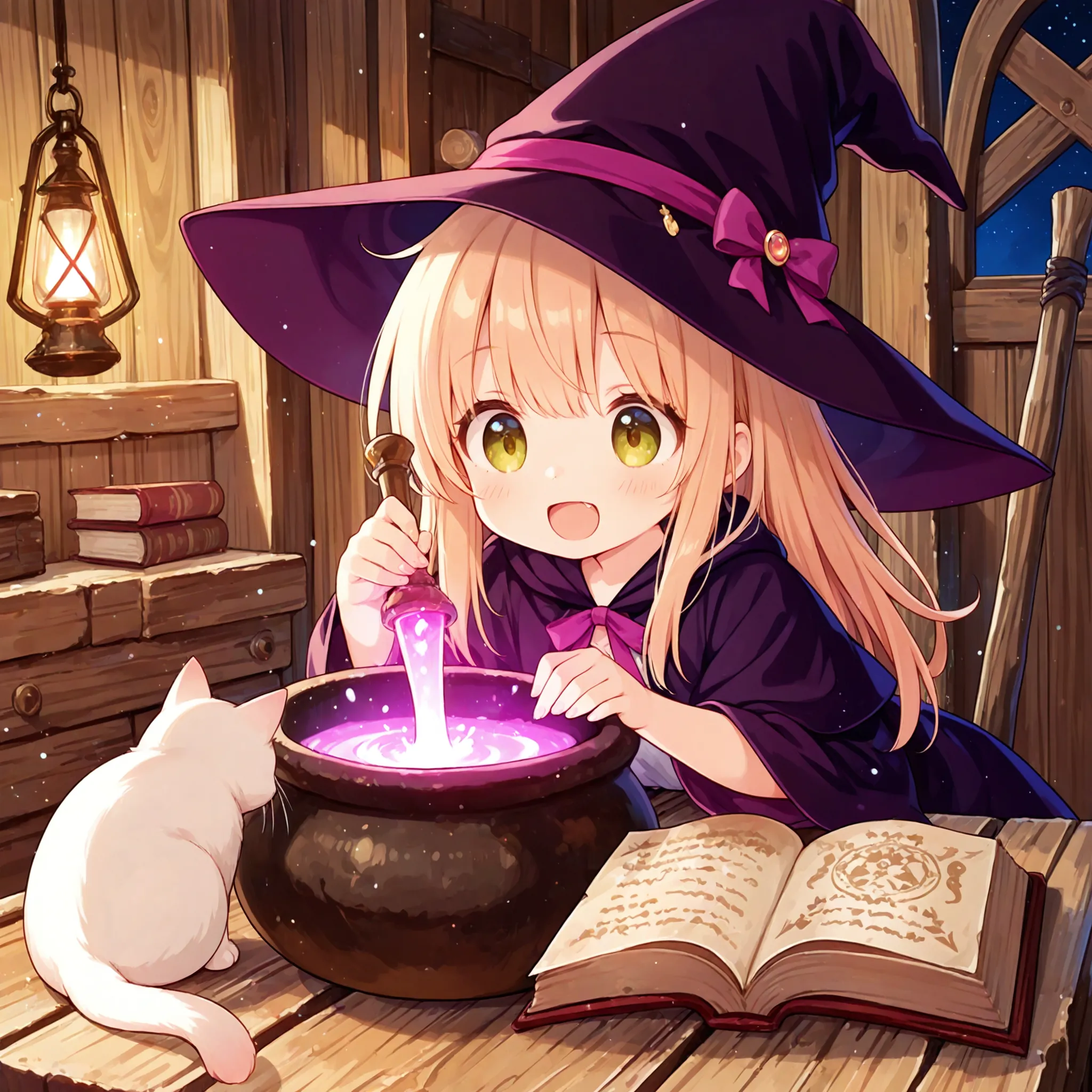 Step into her magical world 🎃✨ She's stirring glowing potions with her familiar by her side. 彼女の居心地の良い小屋をカスタマイズする, 魔法の材料, そして彼女の愛らしい仲間 - 呪文に満ちたシーンはすべて魅力と不思議に満ちている!