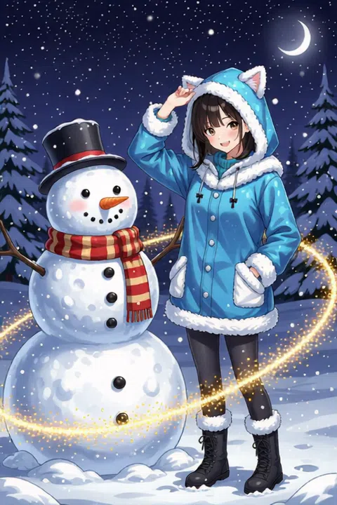 より多くのアプリを見るにはページを訪問してください, 私のアプリは楽しいです. 雪だるまと一緒に冬の魔法に自分を移動させる アニメと現実的な作品に適用されます