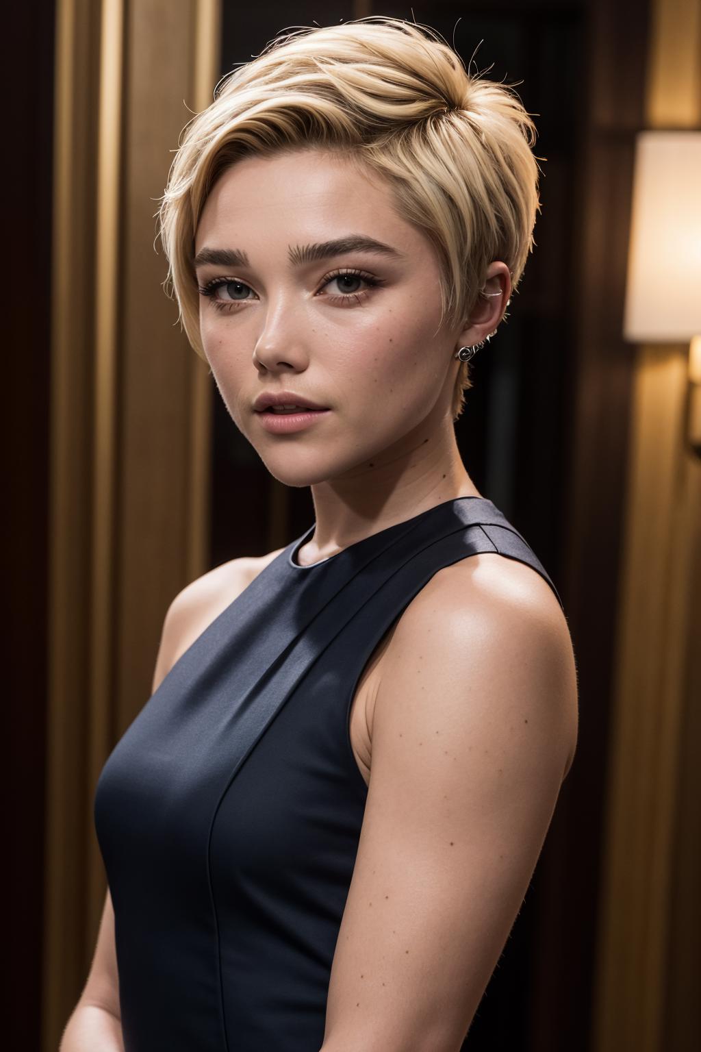 You can use the "nose ring" tag and "very short hair" as many pics in the training data had these.