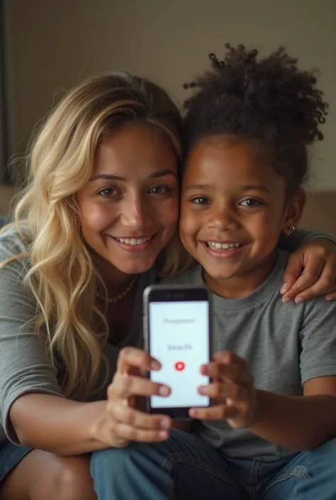 with long light brown hair wearing sunglasses and pouting her mouth and holding her cell phone taking a selfie while sitting on the legs of an elderly black lady