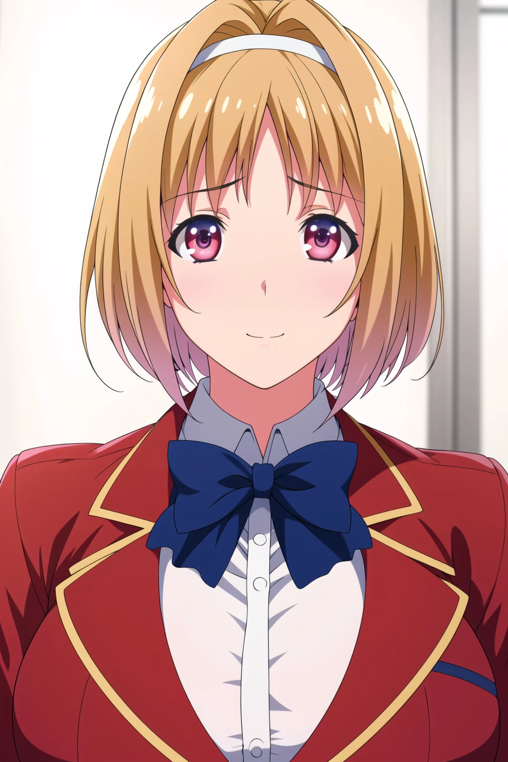 pink eyes, blonde hair,bangs,short hair,