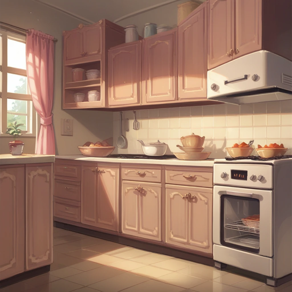 Optional: kitchen, window,oven, stove, refrigerator, cabinet, table
