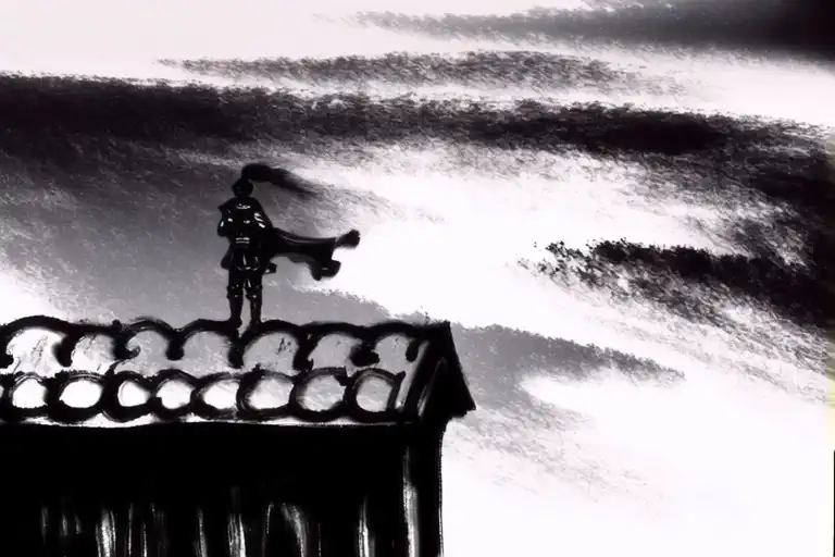 _style, This is an animation in the style of Chinese ink painting videos. This is a black and white digital video rendered in an expressive abstract style