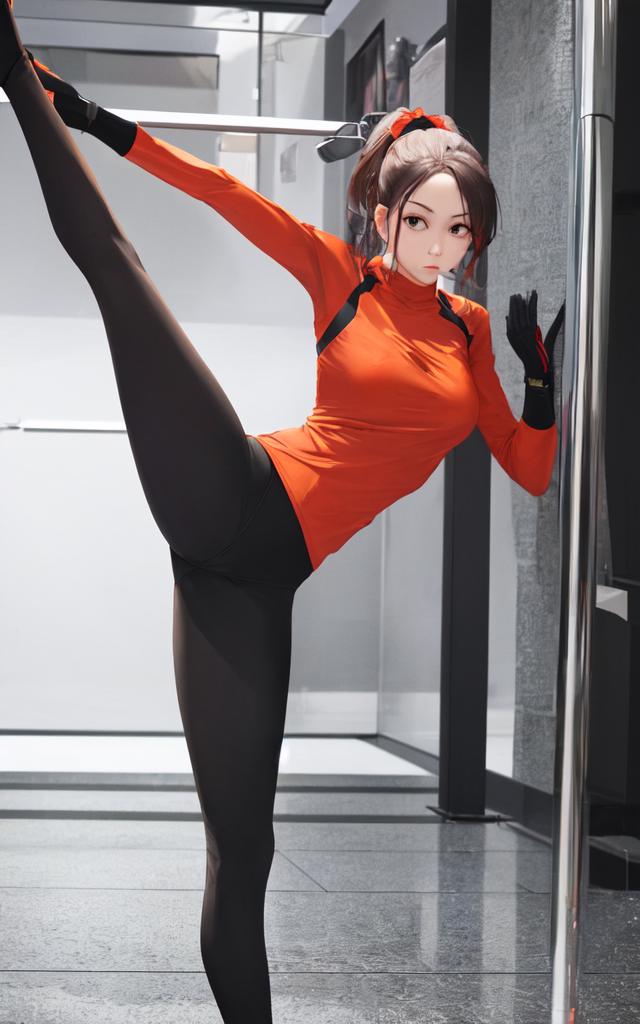<lora:ibalance:1:CT> ibalance:1.2 standing_split, standing_on_one_leg, leg_up Holding leg, best quality, high detailed, Faint lips,UC:realistic, cinematic lighting kawaii cute 1girl 16yo hazel hair orange eyes, whiskers school_Uniform thighhighs loafer
