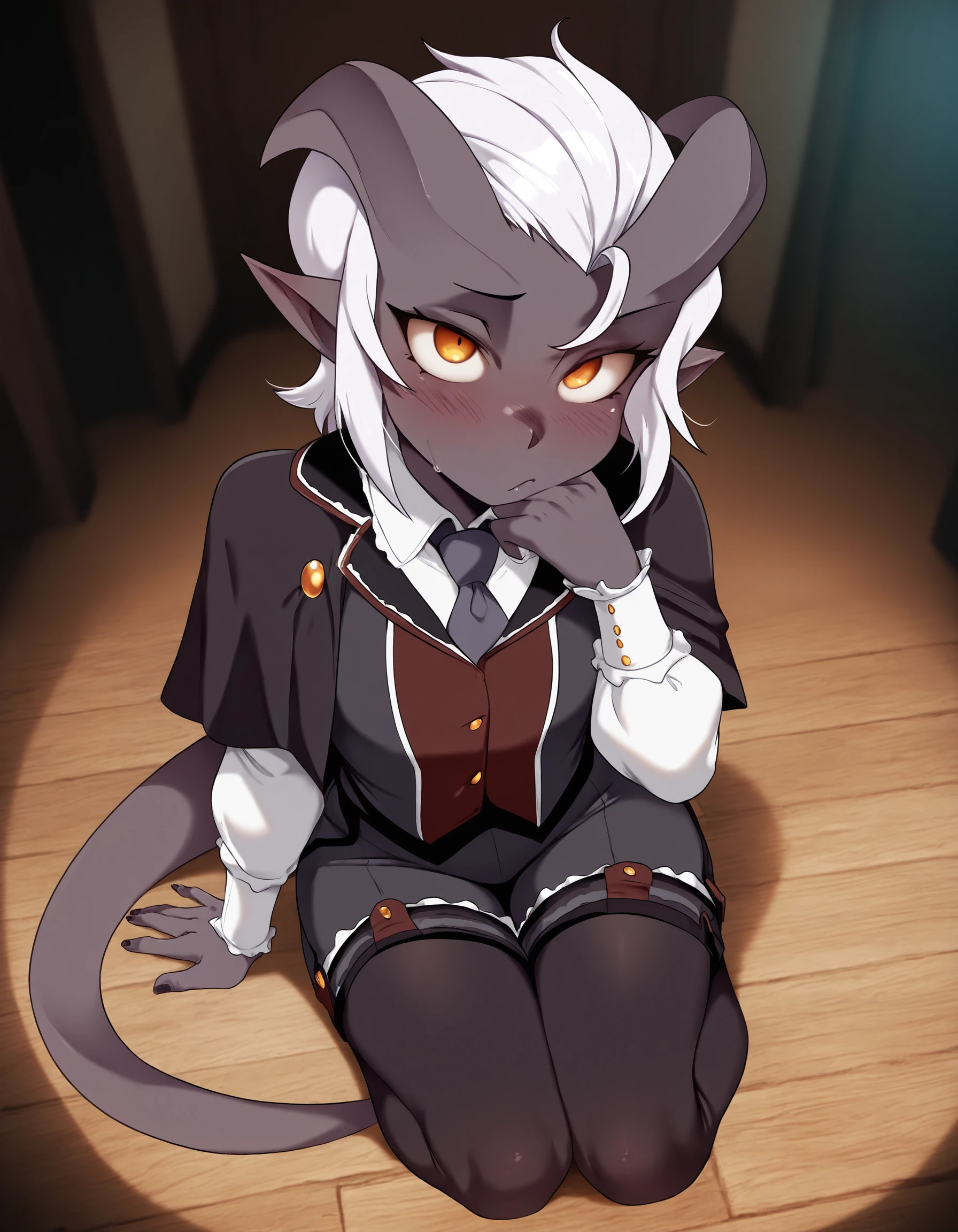 Default Outfit: v1g1lDef, vest, capelet, shorts, necktie