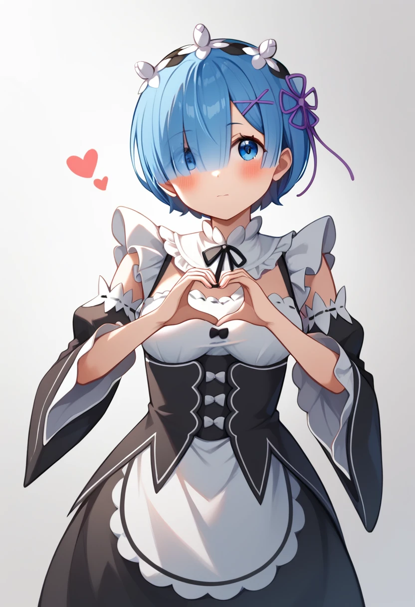 触发词:1girl,solo,rem_\(re:zero\),blue_eyes,hair_over_one_eye,short_hair,blue_hair,hair_ribbon,roswaal_mansion_maid_uniform,