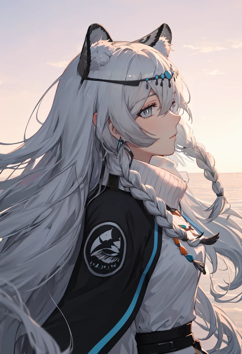 The trigger word is pramanix_arknights, and the pruned tags are animal_ears, leopard_ears, long_hair, animal_ear_fluff, braid, grey_eyes, twin_braids, grey_hair, leopard_tail, tail, white_hair, very_long_hair, side_braids, hair_between_eyes, leopard_girl.