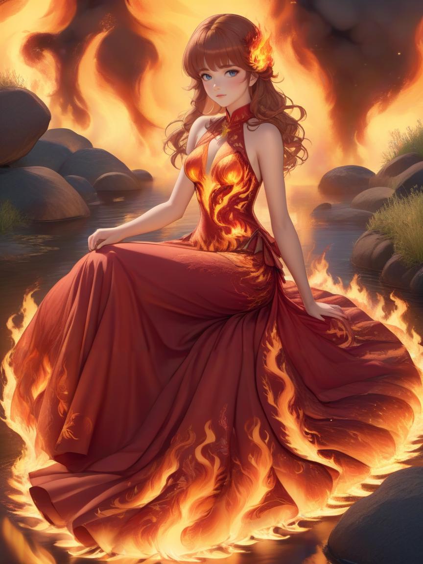 These dresses are themed after the mythical fire chic... phoenix, the bird of rebirth and flame. Lots of red and flaming elements that keep your characters looking hot.