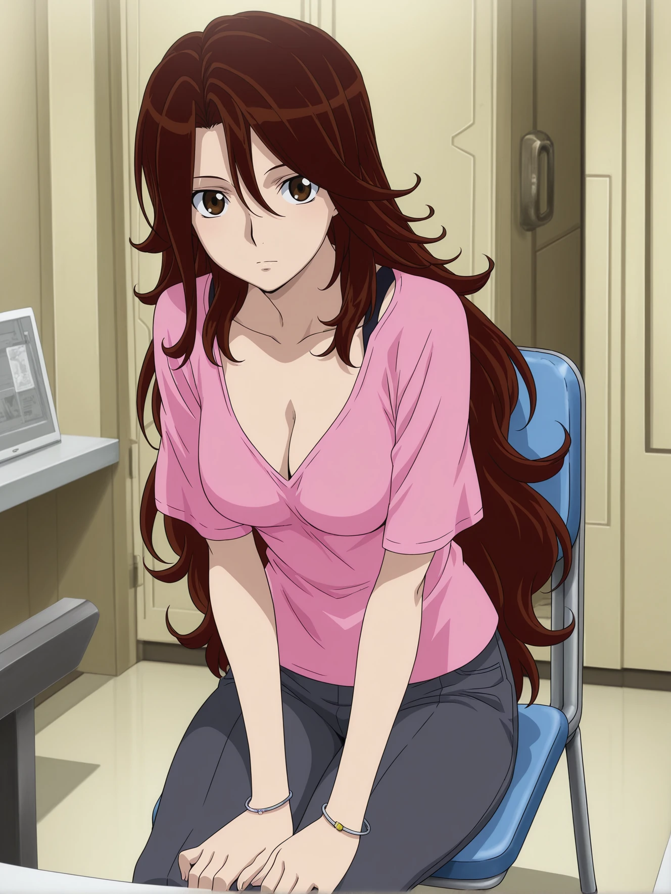 sumeragi,1girl,solo,brown eyes,brown hair,long hair,hair between eyes,