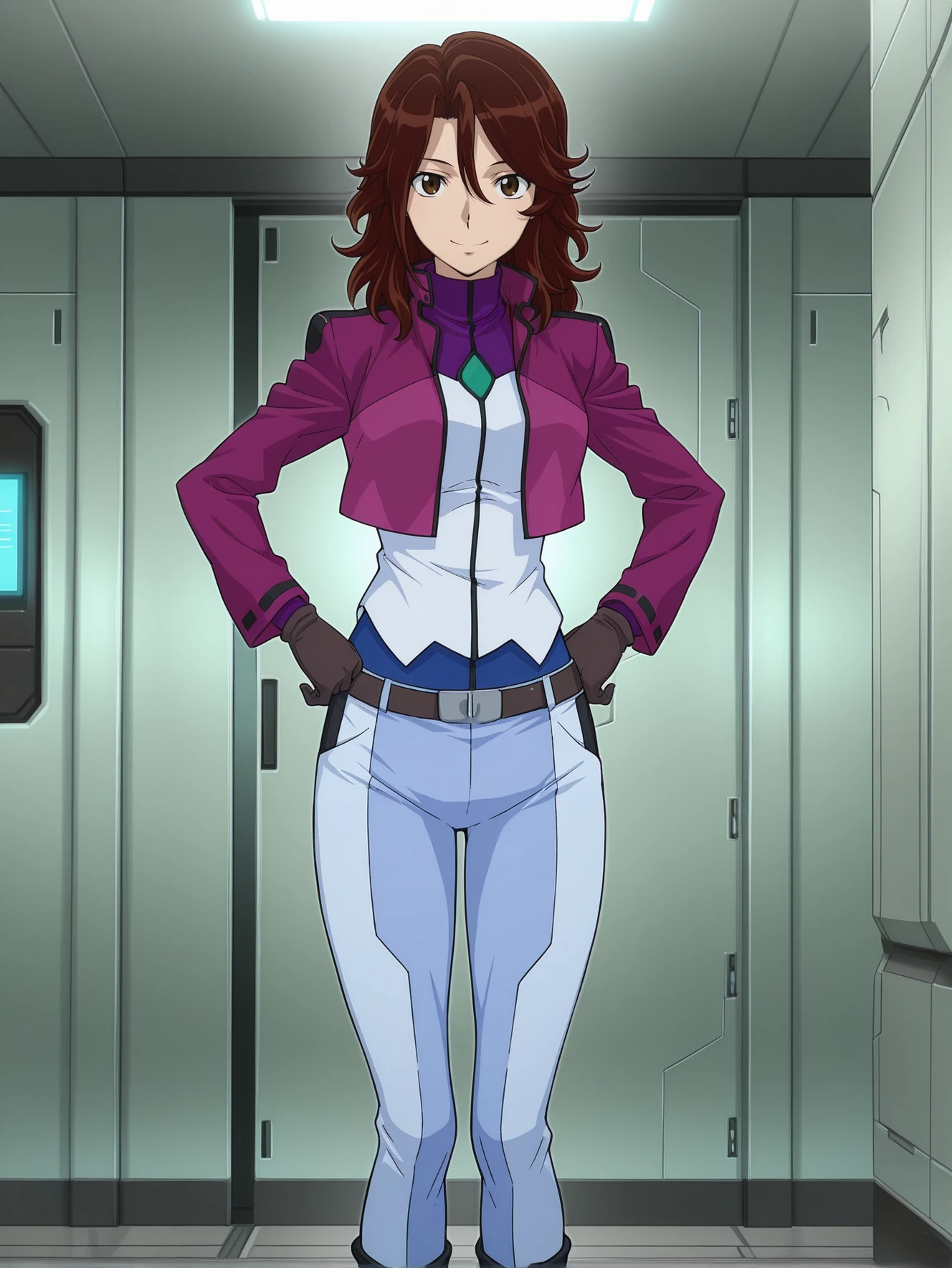 cb uniform,cropped jacket,blue pants,belt,brown gloves,black boots,