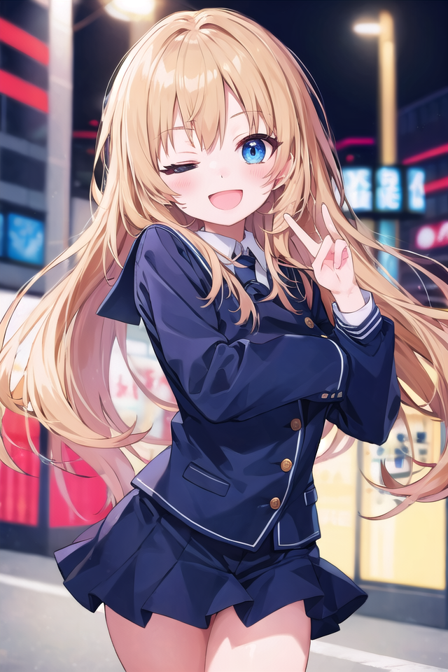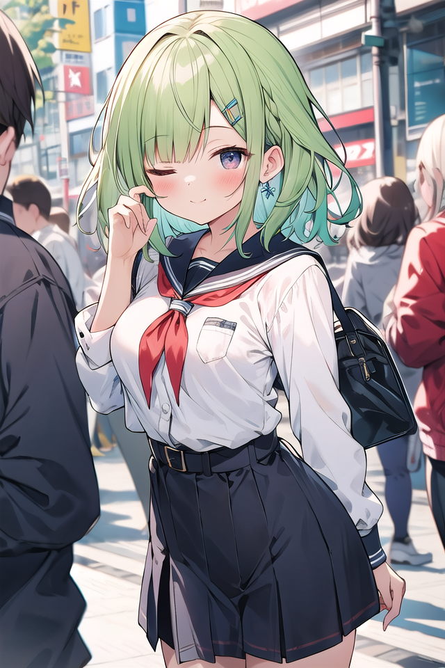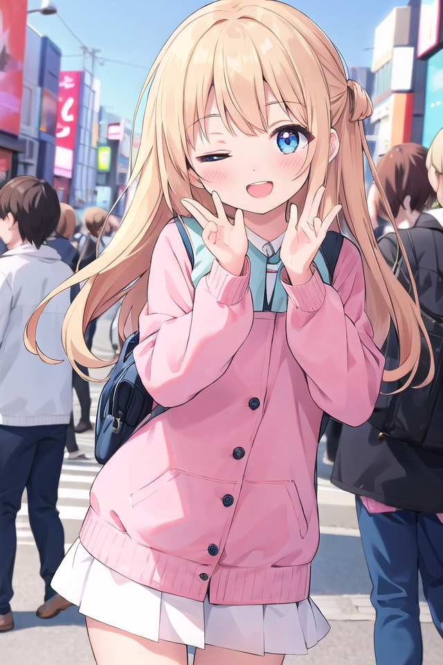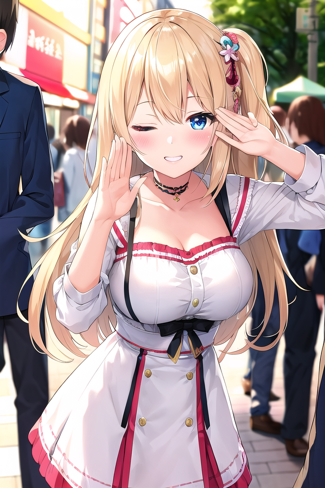 使用時はone eye closed, winkのプロンプトを指定してください。