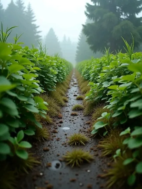 モデルの学習傾向により、結果としては石畳も石柱も消え、ただの静かな草原の小道に変わりました。