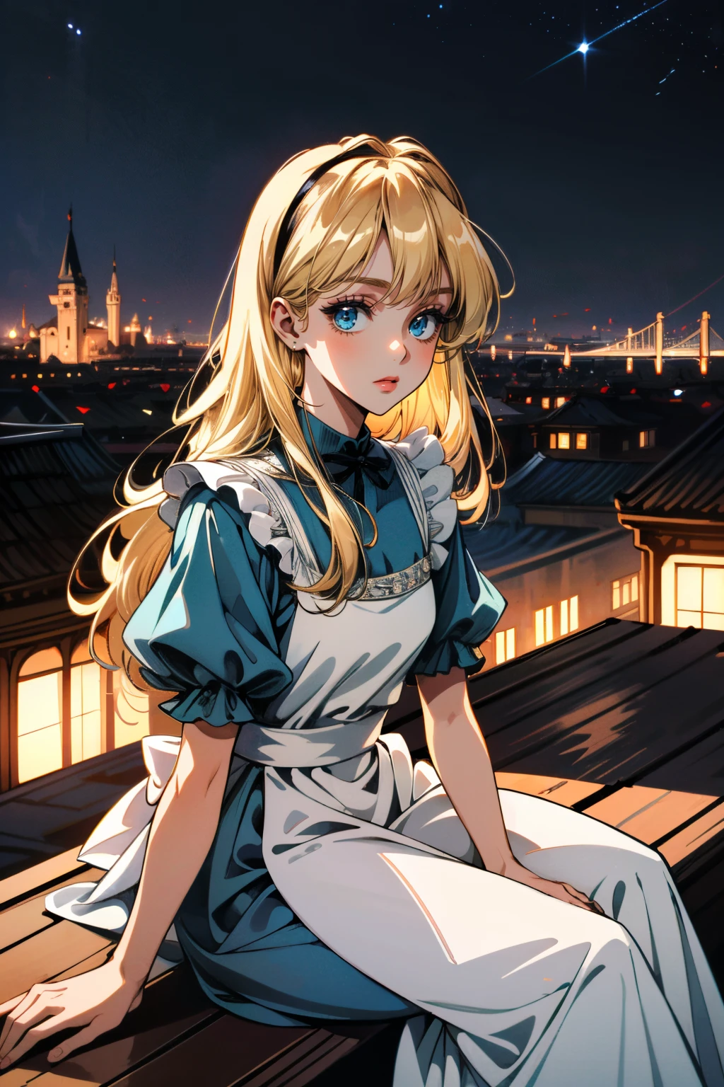 DisneyAlice, 1girl, blonde hair, blue eyes, hairband