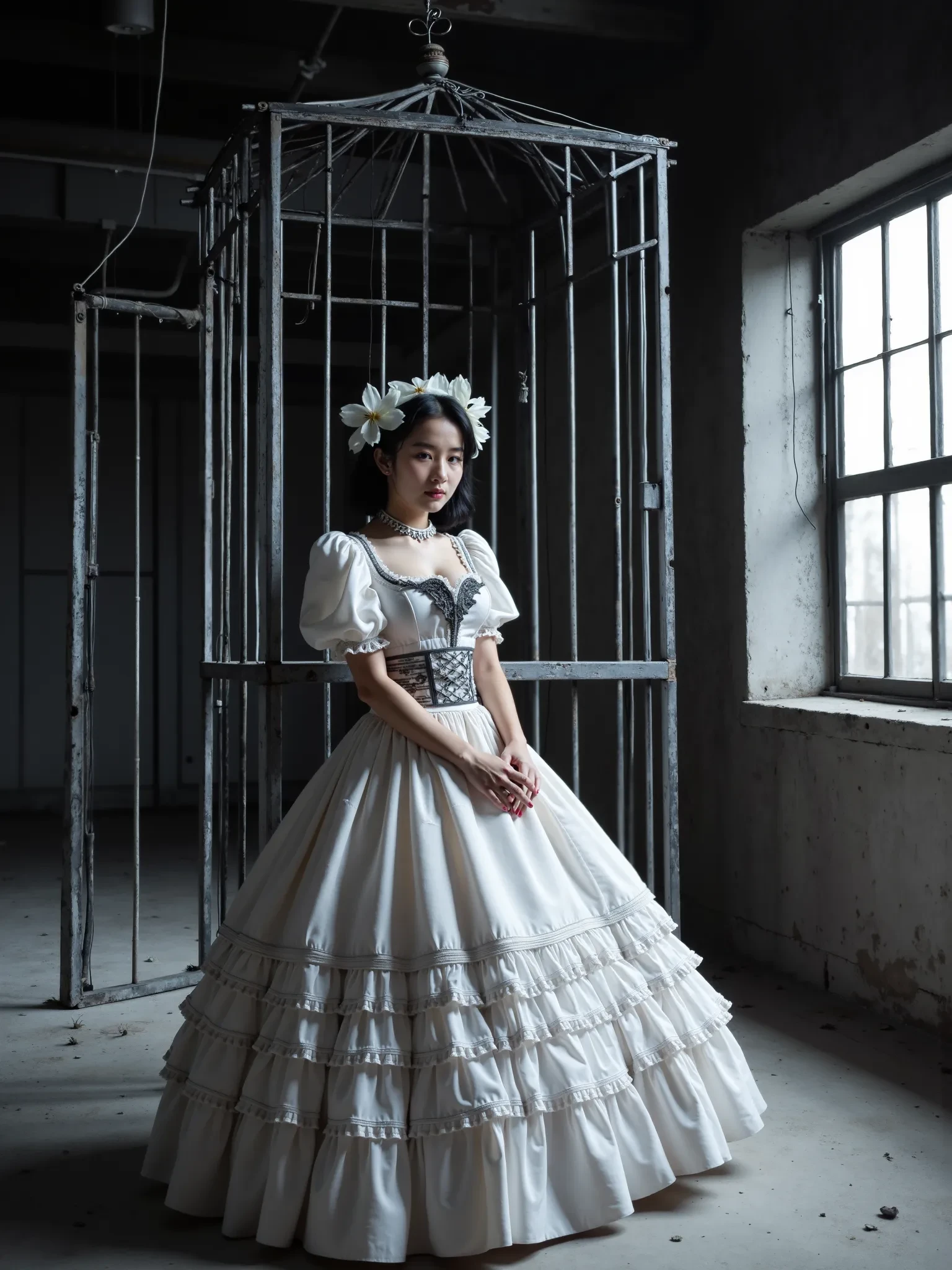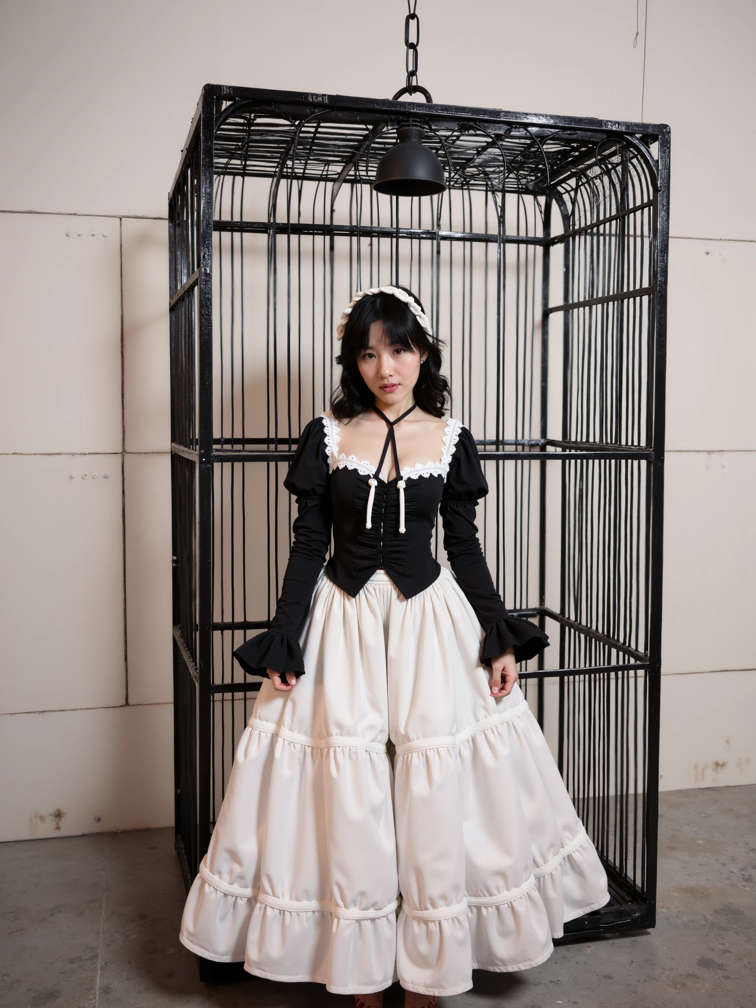 아바타를 업로드하여 철제 새장에 갇힌 소녀의 사진을 만드세요.