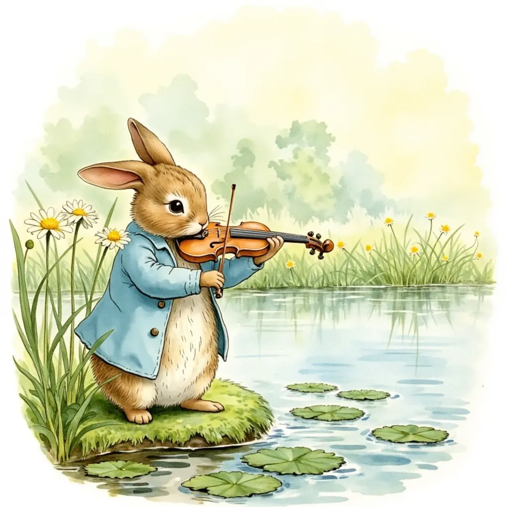 만화 테마에서 바이올린을 연주하는 토끼를 만들기