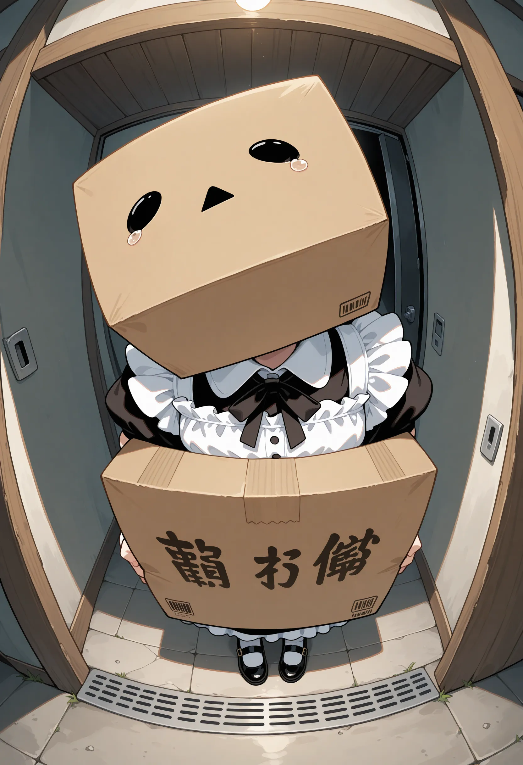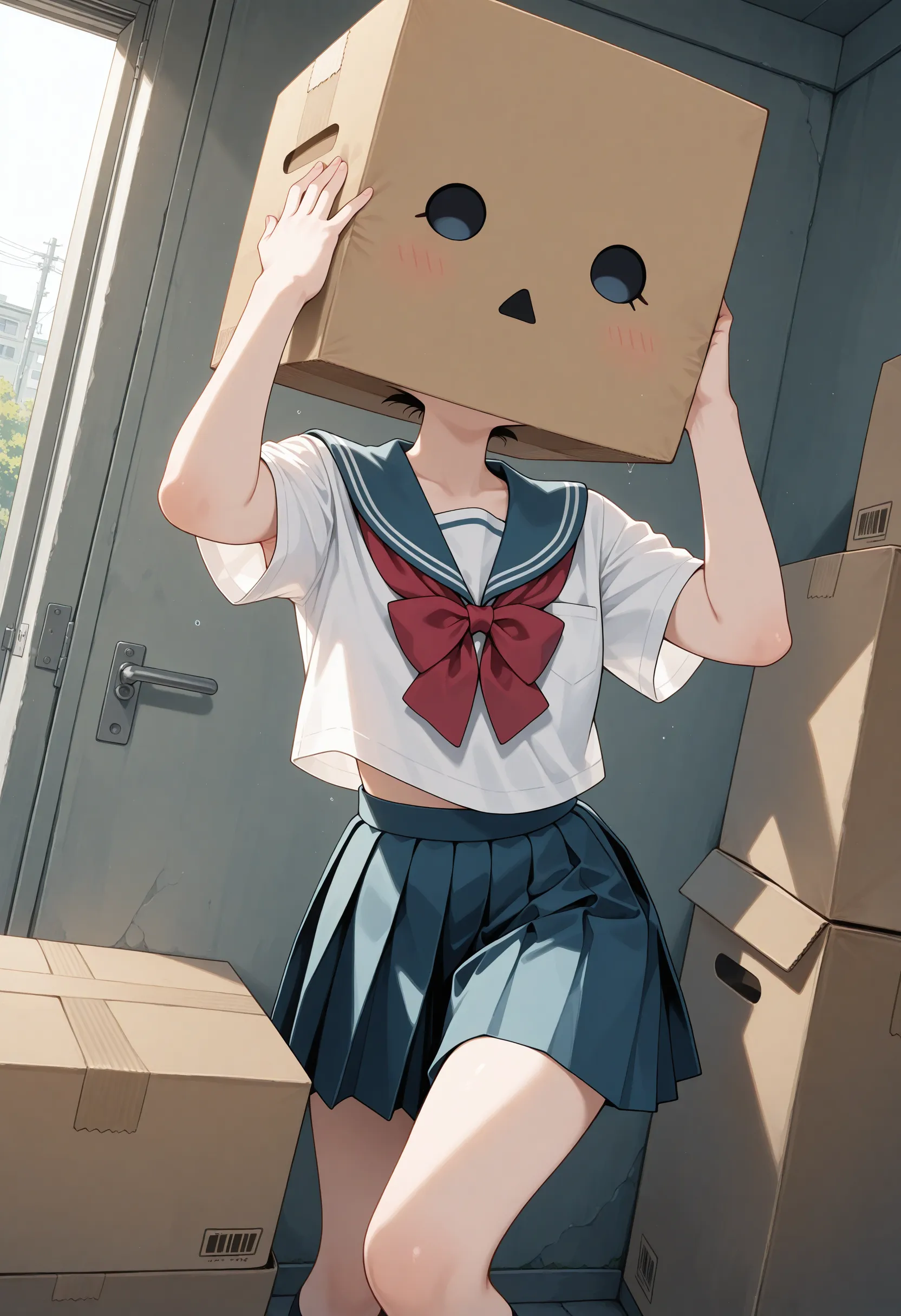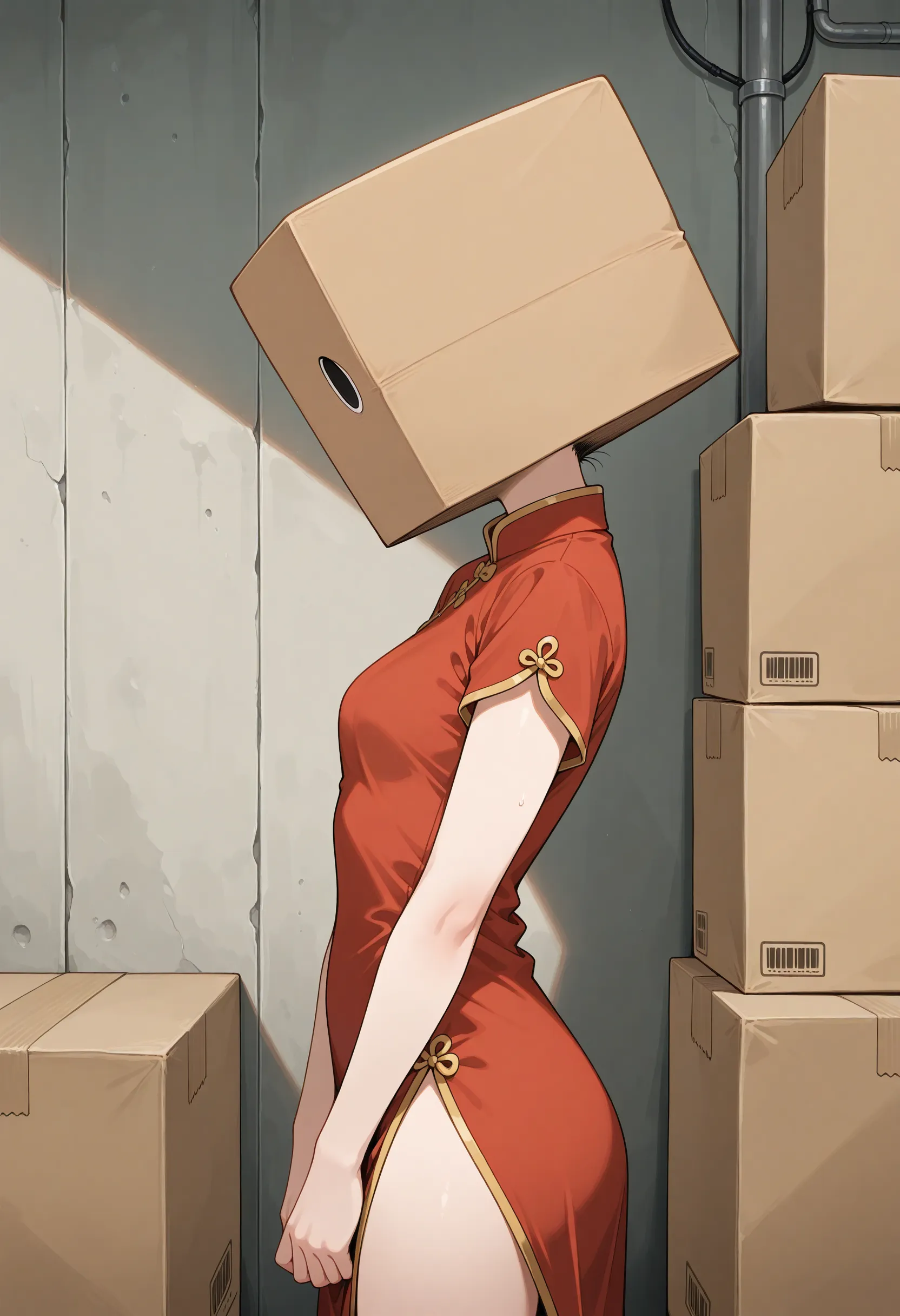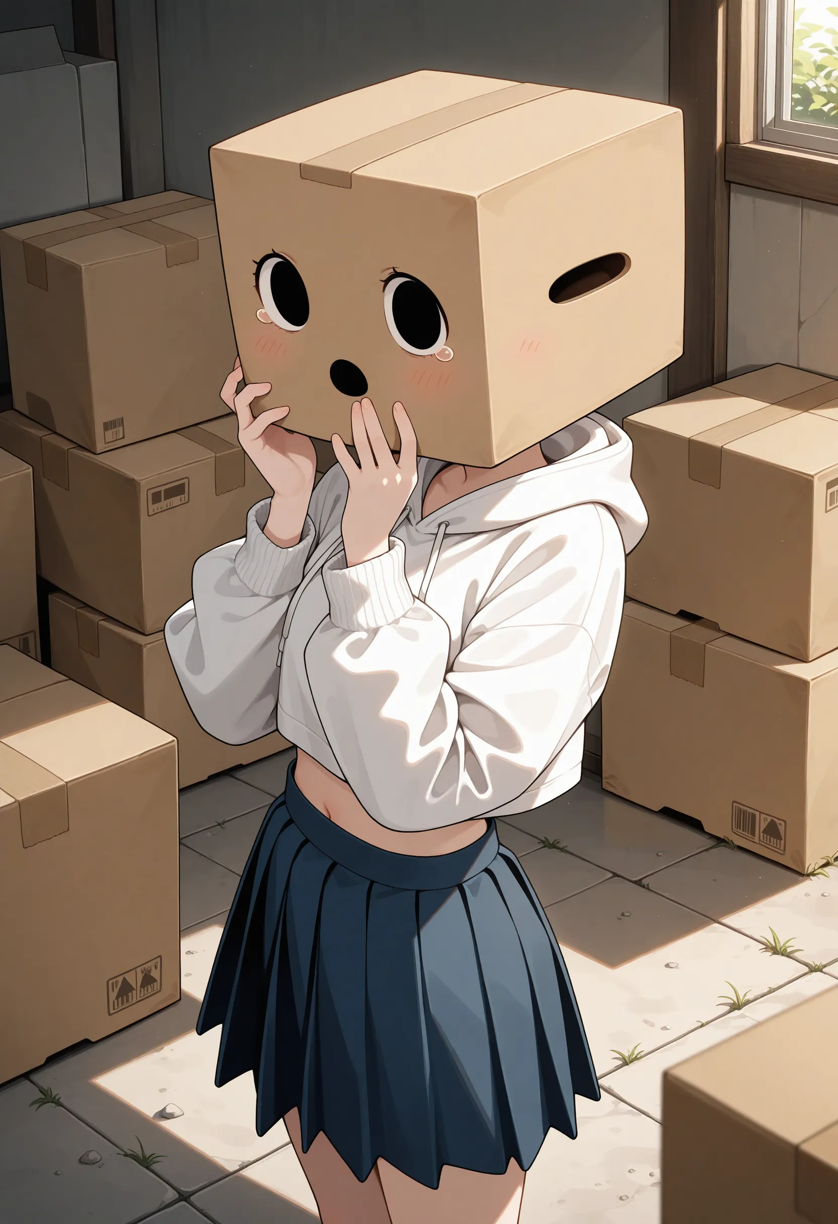 프롬프트로 상자 머리를 가진 애니메이션 소녀를 생성하기.