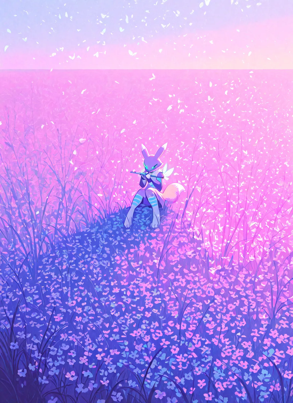 목초지 풍경에서 플루트를 연주하는 털실 동물 만들기