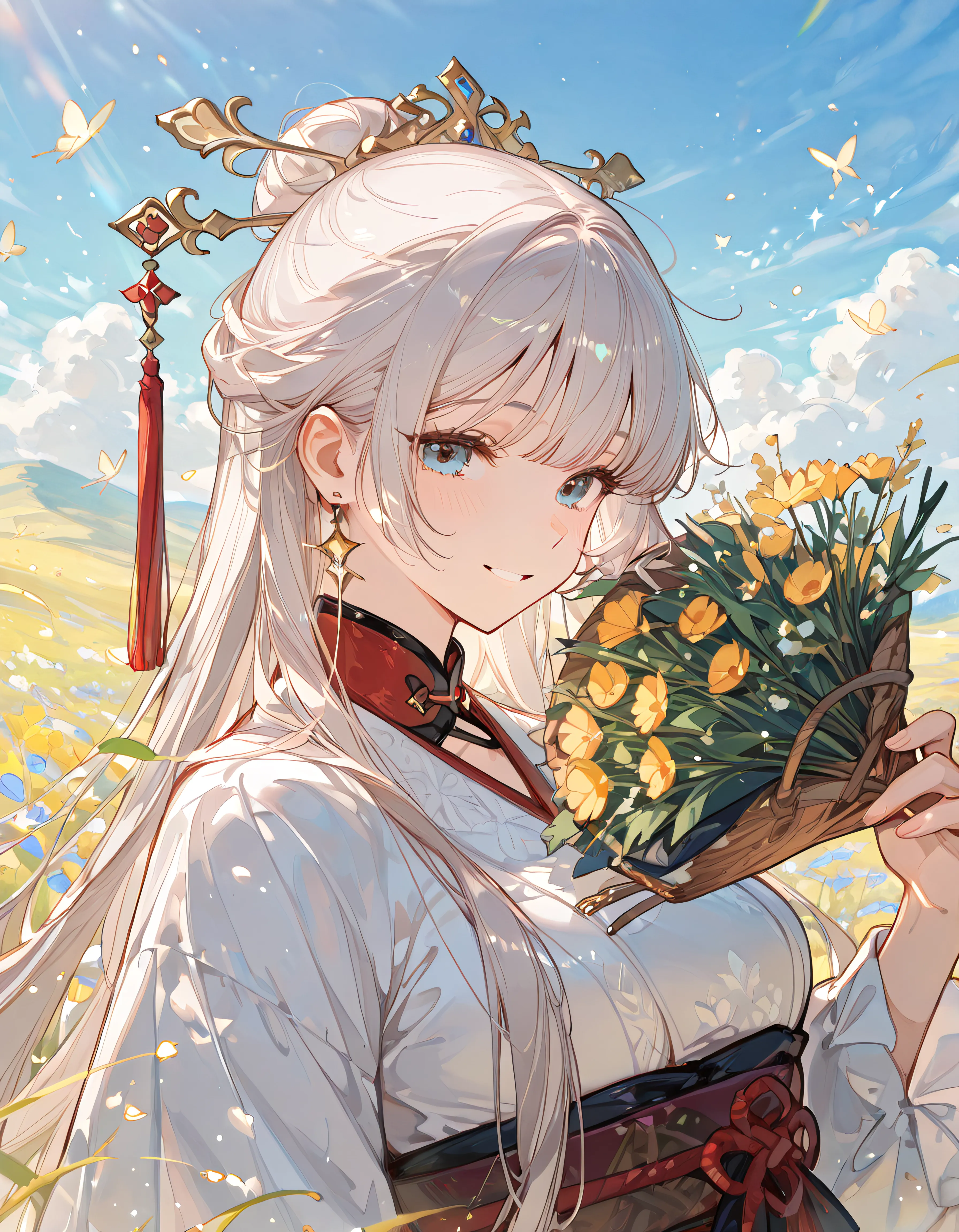 꽃으로 둘러싸인 꽃 드레스 버전의 자신을 만들기