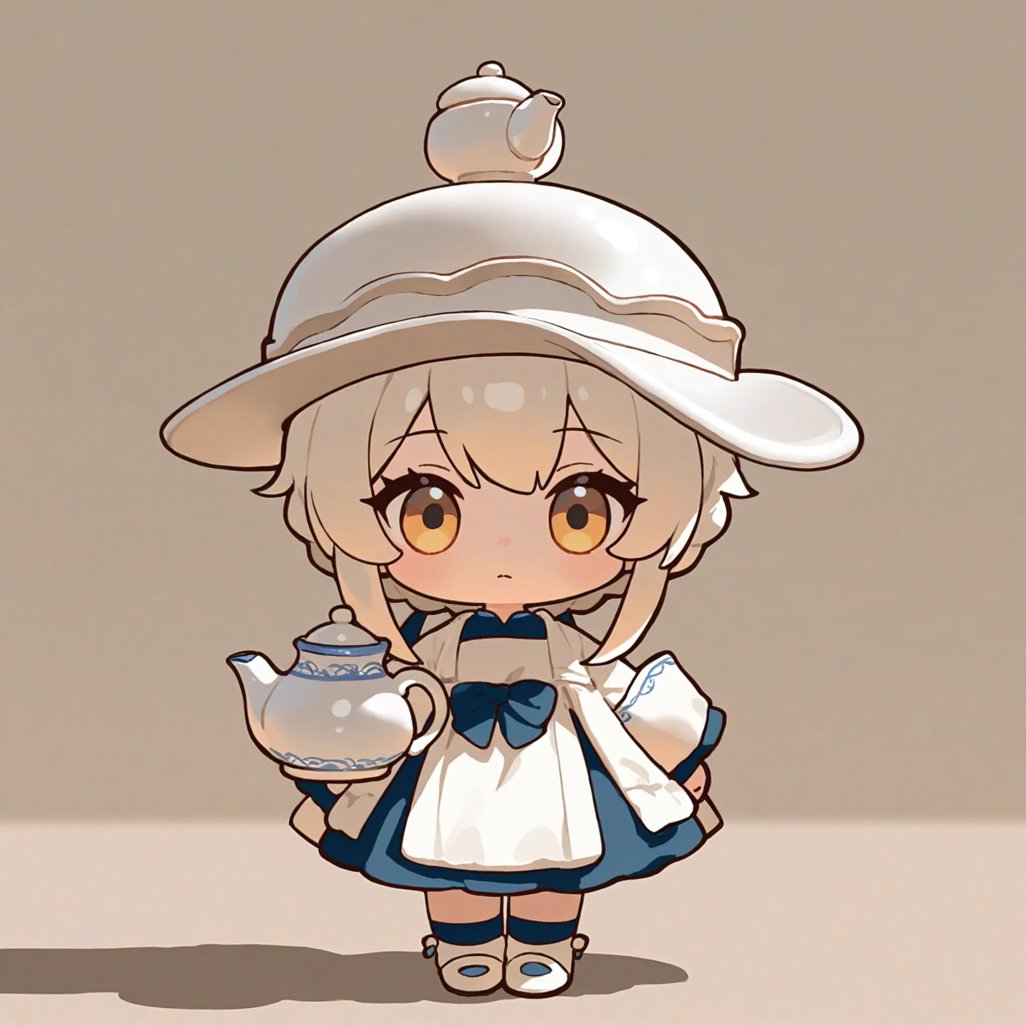 귀여운 찻주전자 소녀가 따뜻한 차를 대접해 드립니다