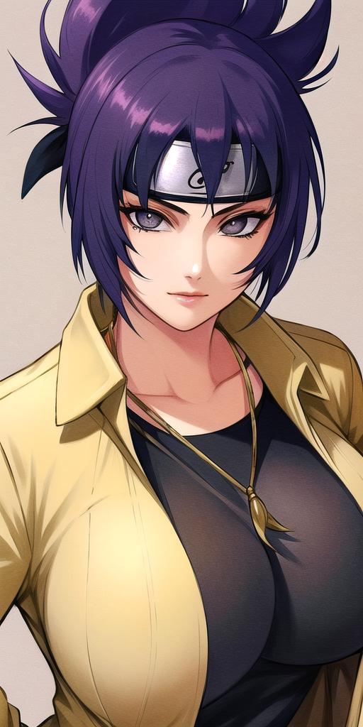 <lora:Mitarashi_AnkoV2:0.7> mitarashi_anko, forehead_protector, Anko_fishnet_bodysuit_bare_legs_Brown_microskirt_Brown_open_trench_coat