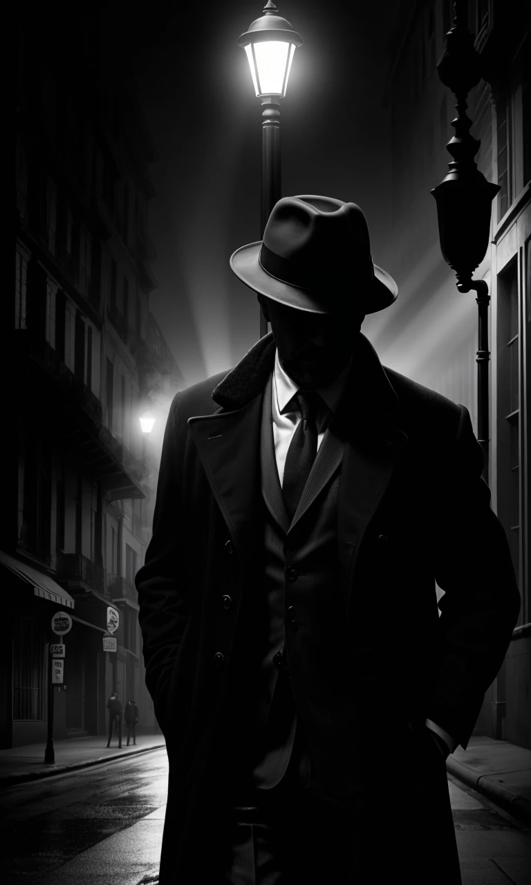 Best prompts to use; cinematic lighting, 1940s style, light rays, darkness, single light source, dark mood, film grain, dark city,
