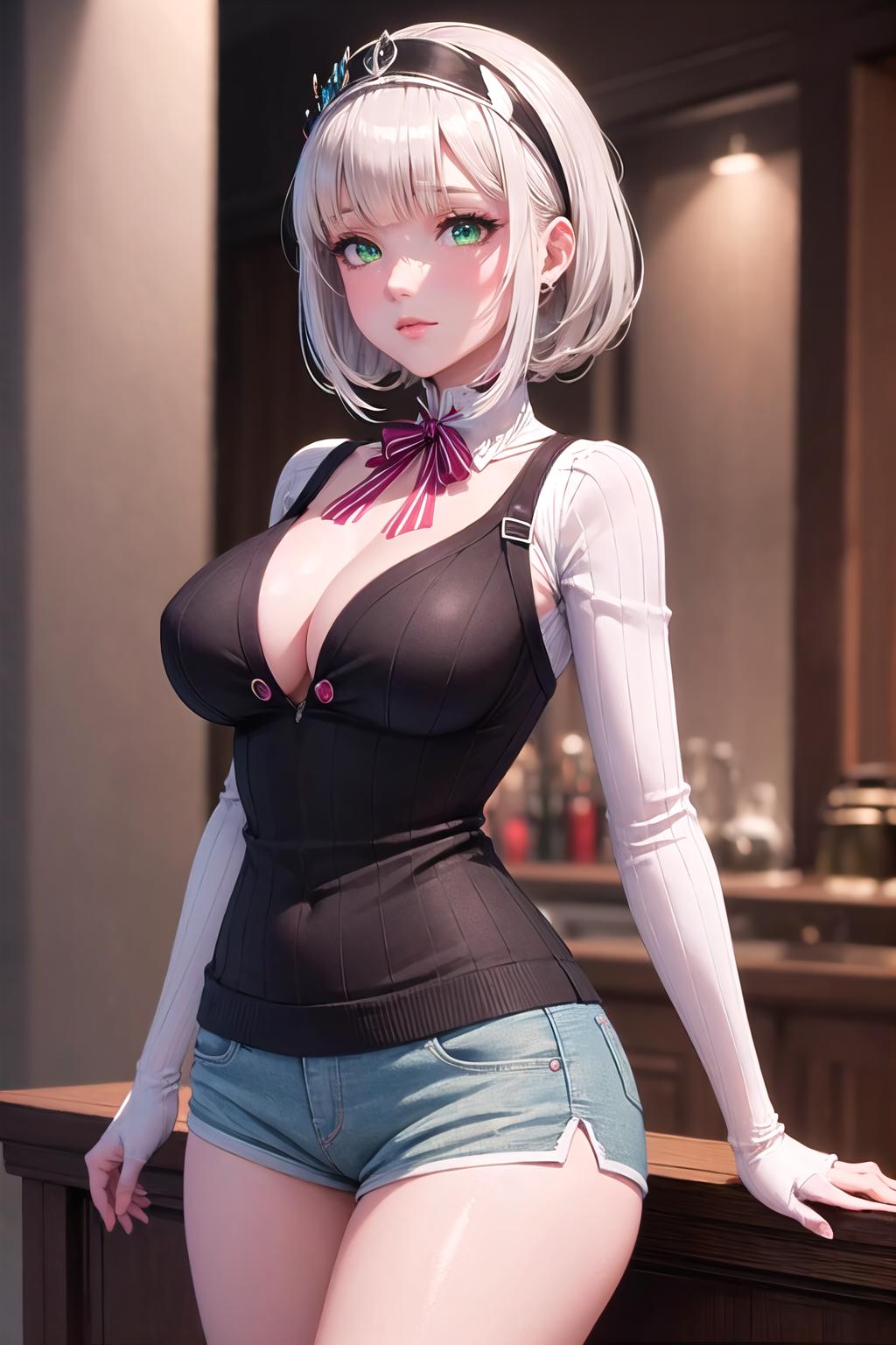 ?????????????, white hair, green eyes