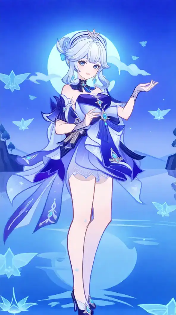 The frame is adorned with a golden border featuring intricate designs, including star-like emblems in each corner and delicate patterns along the edges, creating an elegant and polished visual effect.The previous version for Wan 1.3B can be found here https://civitai.com/models/1728768/genshin-tcg-style-wan-13b