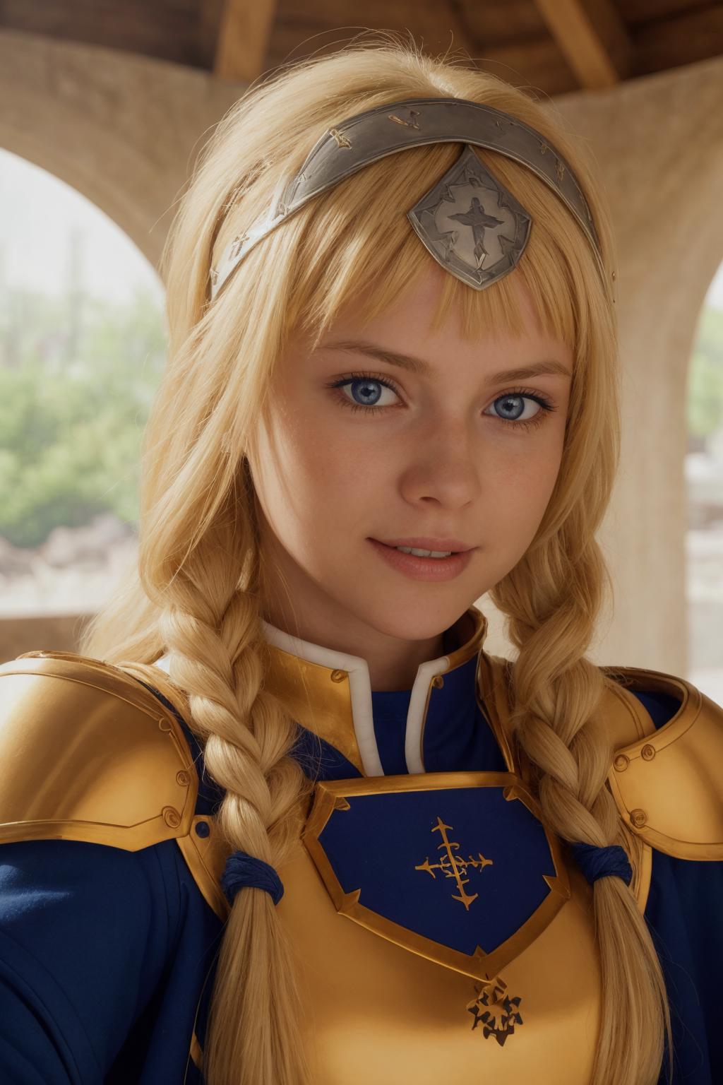 For main outfit, "long locks, cape, gauntlets, pauldrons, breastplate, faulds,"