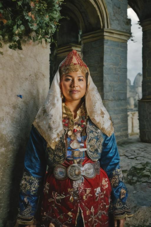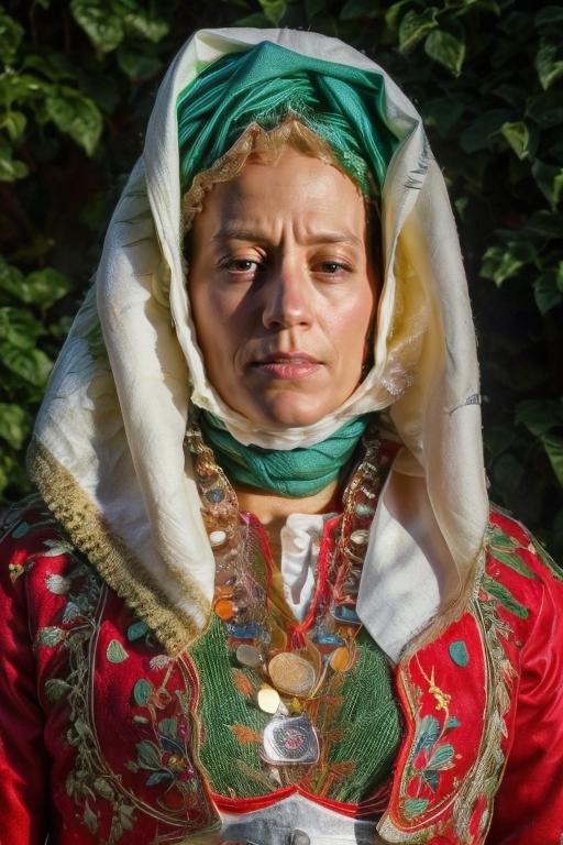 The traditional clothing in this Lora is based off of the Aegean region in Western Turkey along the Mediterranean Sea. Here is the women's version and the trigger word is egelikadini. Many traditional Turkish outfits are composed of three elements: Yelek (vest), Şalvar (baggy trousers), and Kaftan (tunic) with a sash. These are common for both sexes. Women usually wear either headscarves or some other covering for their hair and are often decorated. Also the clothing is often brightly colored and decorated with embroidery.