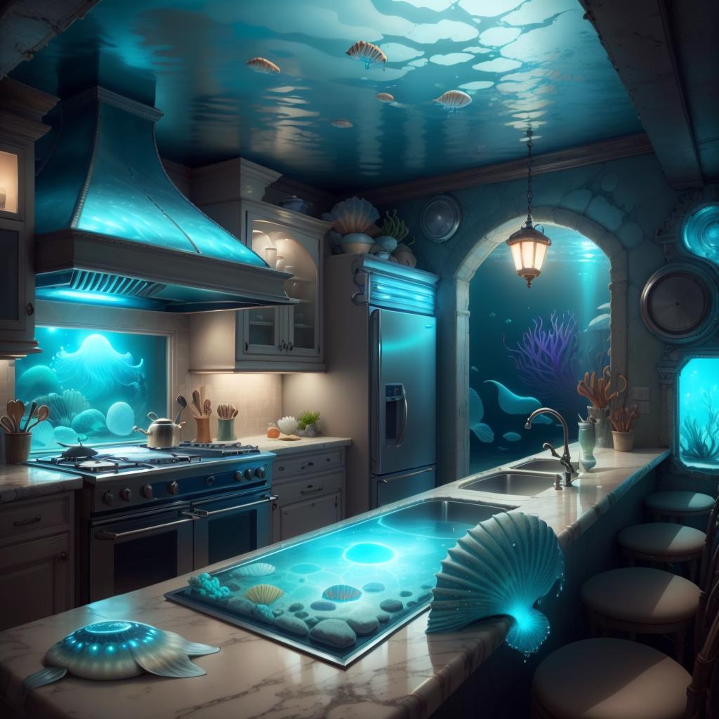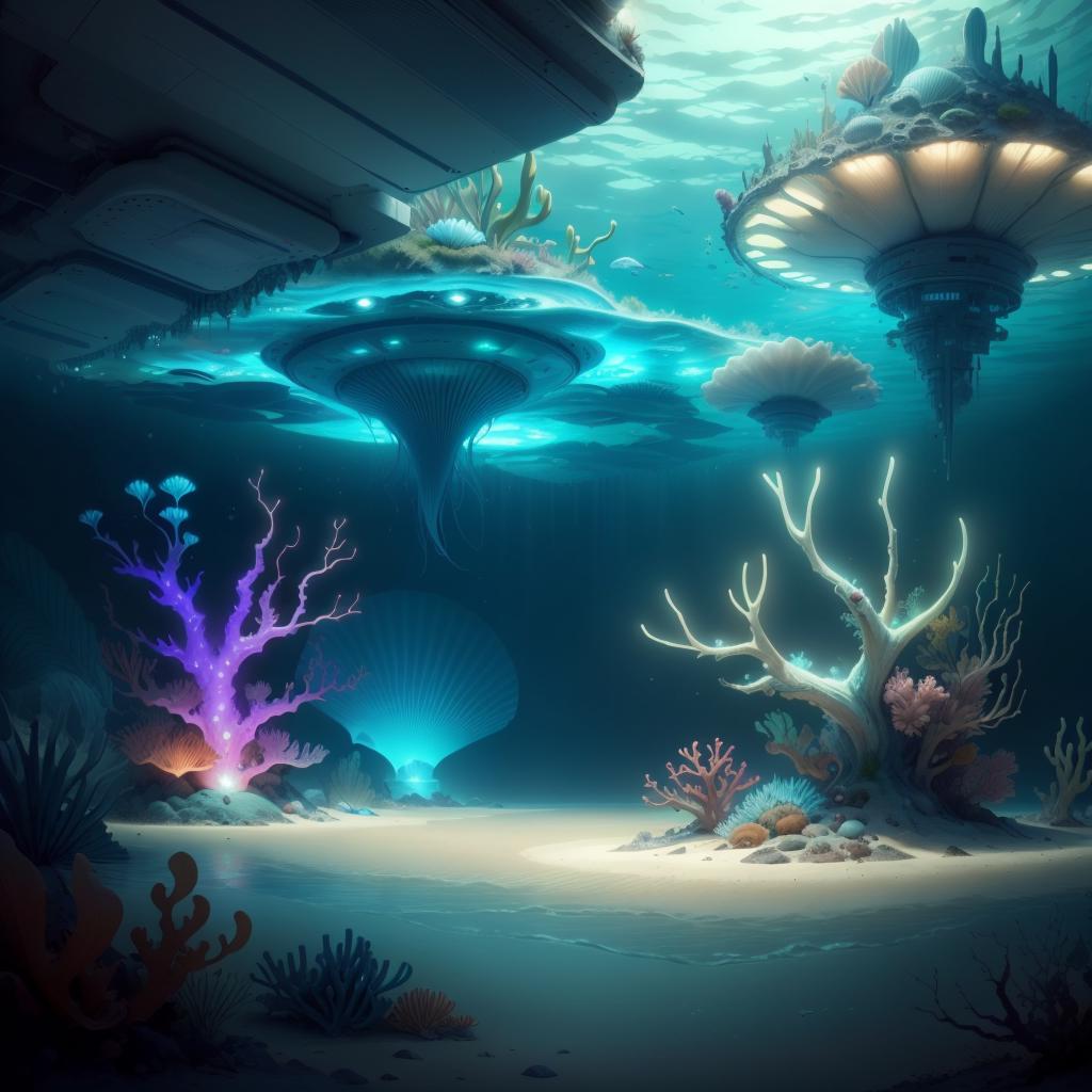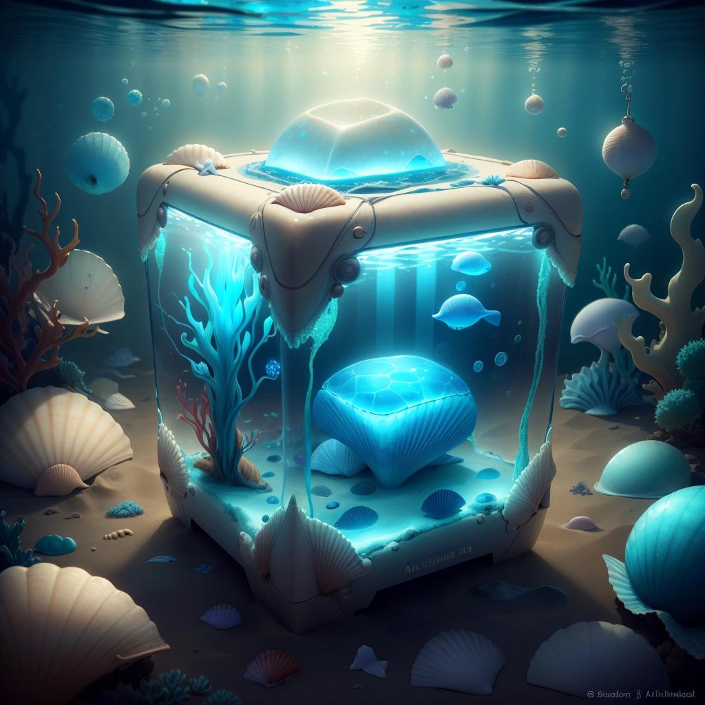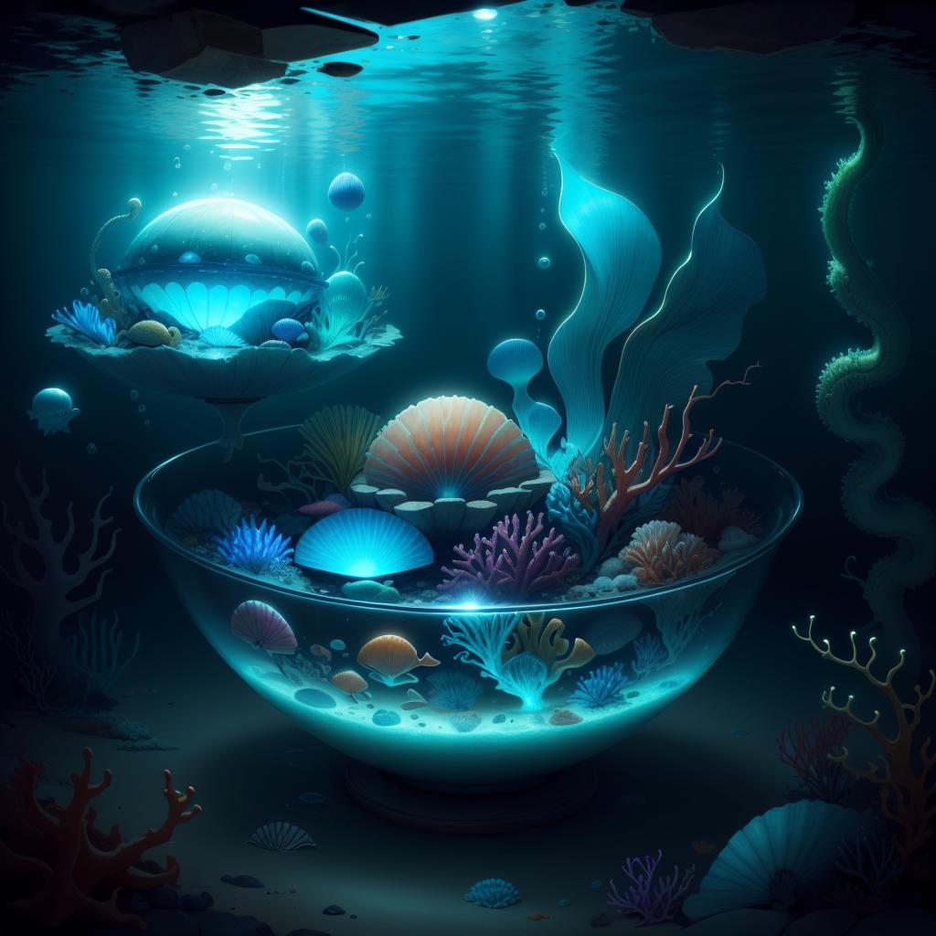 add different component from the Ocean this LoRA is highly reactive to those, after testing one of the most interesting words was bioluminescent, shell