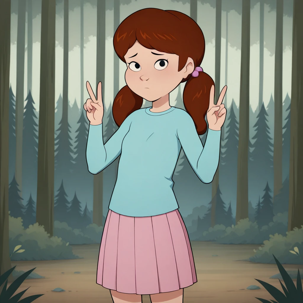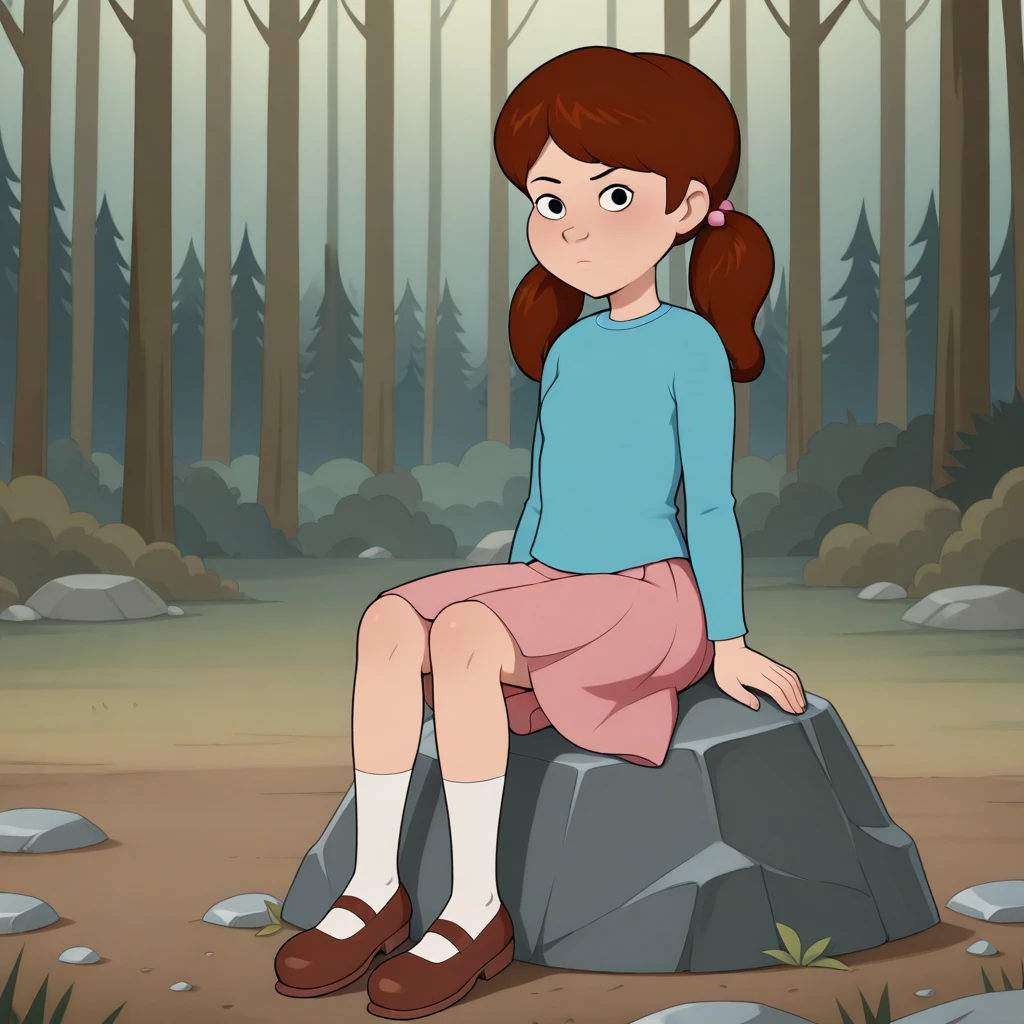 MAUREEN, 1girl, solo, brown hair, twintails, black eyes,
